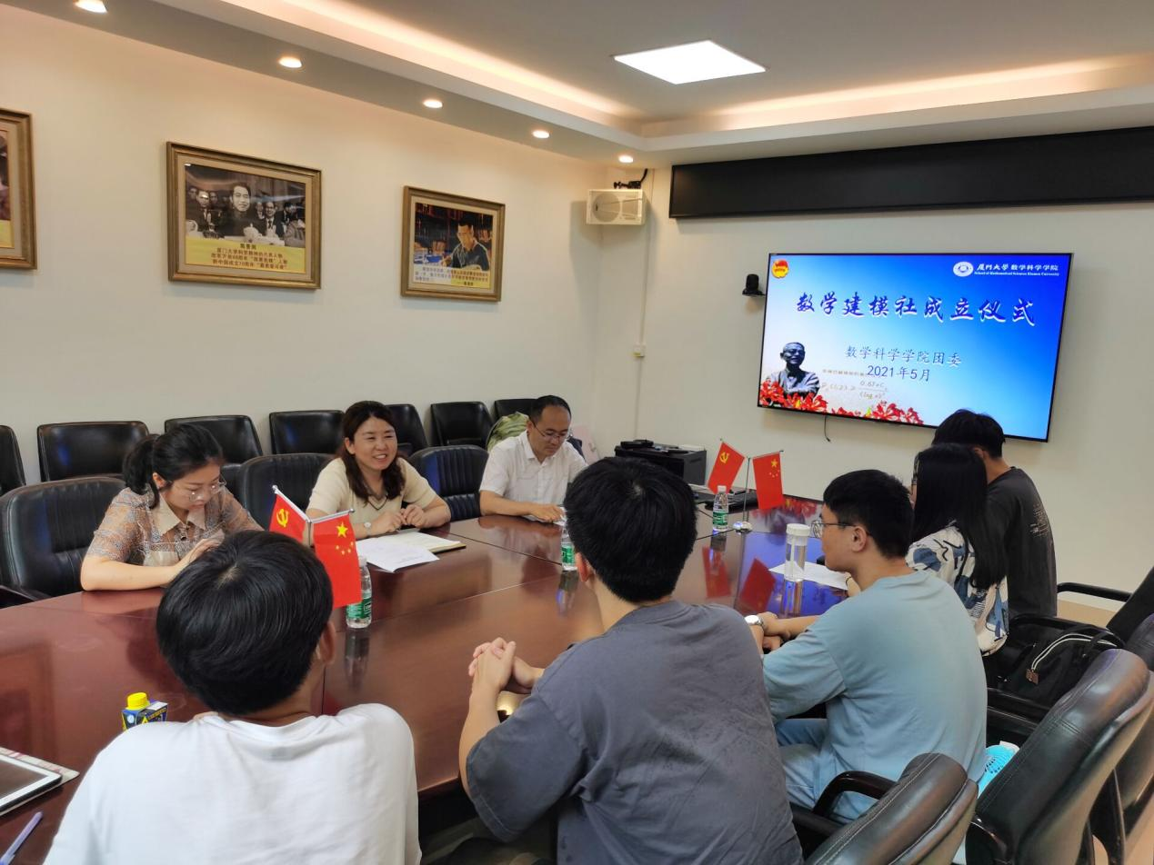 为普及数学之美,培养创新意识和创造能力,同时为同学们提供一个良好的沟通平台,5月19日,厦门大学数学建模社成立仪式在9001cc金沙海韵园行政楼B313会议室举行。学院党委副书记丁昌利、团委书记于正伟、团委副书记陈淑铌以及社团发起人等出席仪式,社团发起人刘家浩同学主持仪式。