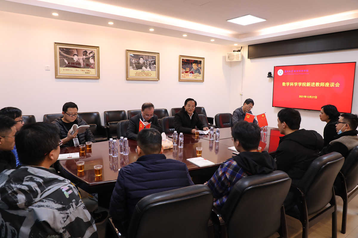 黄宝秋书记在座谈中谈到,大家都是青年才俊,处在人生的黄金时期,是学校和学院事业发展的生力军,希望大家胸怀志向、脚踏实地、淡泊明志、潜心学问,努力在新的人生阶段实现新的梦想。他结合教育部印发的《新时代高校教师职业行为十项准则》提出六点希望:一要胸怀“国之大者”,增强作为大学教师和数学工作者的自豪感、使命感,争做“大先生”;二要胸怀事业定力,努力涵养精益求精的教学精神和“十年磨一剑”的科研定力;三要严守职业底线,加强自律自省,做到廉洁从业、廉洁从教;四要学会多向沟通,保持谦虚作风,注重交叉融合,善于取长补短;五要争取更多收获,挖掘发展潜能,关心集体事务,做到学术、思想双进步;六要注重身心健康,加强体育锻炼,保持阳光心态,为未来积蓄充足能量。