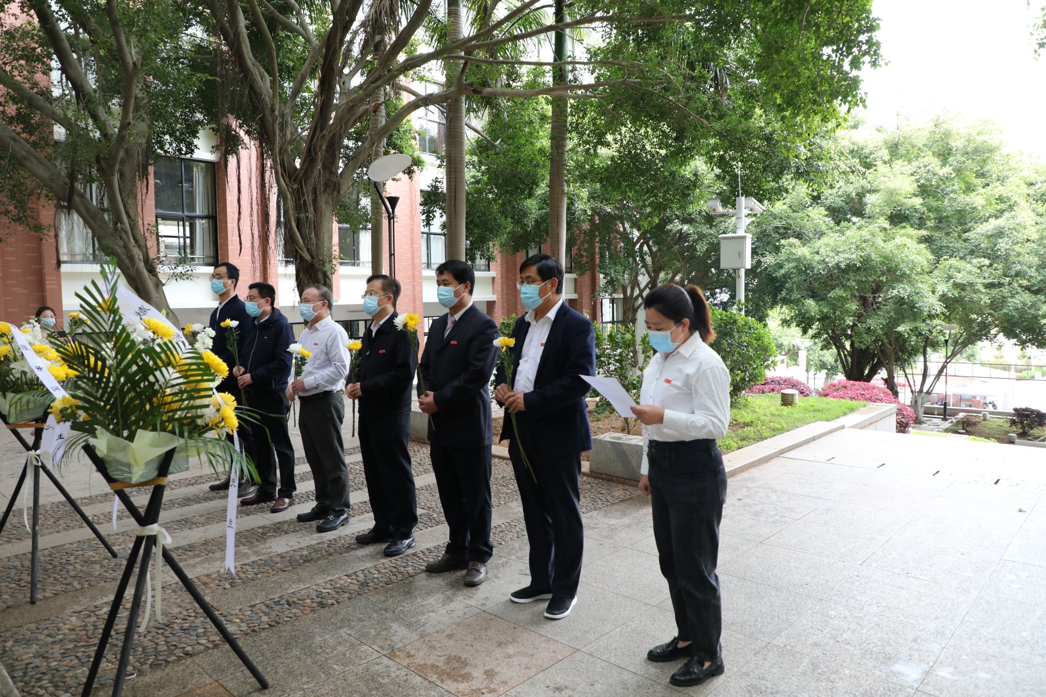 在陈景润铜像前,到场人员共同追思陈景润先生的光辉事迹,向铜像三鞠躬。院党委书记黄宝秋、院长谭绍滨向铜像敬献花篮,院党委副书记毛通双、丁昌利,副院长张剑文、金贤安、宋翀等领导向铜像敬献鲜花,以表思念。