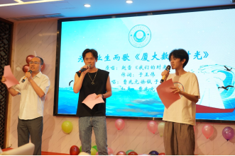 毕业典礼结束后,由硕士毕业生余星宇、林方婷共同主持毕业晚会。我们相遇在夏天,也在夏天告别,一首《遇到》开场歌曲勾起大家相遇于厦园的美好回忆。《Just say hello》《恋曲》《二十二》《稻香》《花海》《朋友》《凤凰花开的路口》《明天会更好》……晚会期间,独唱、合唱、吉他弹唱,多才多艺的同学们用各种方式纷纷表达不舍之情,送上祝福之意。晚会在吉他弹唱《送别》中圆满落幕。