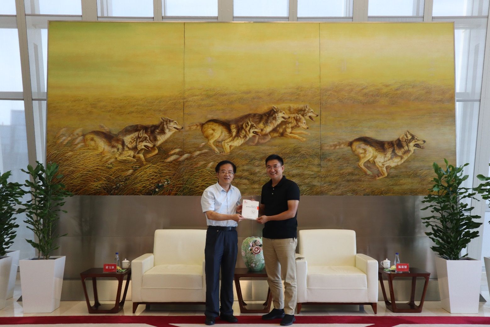 黄宝秋介绍了学院近年来毕业生情况,并向陈欣慰赠送院史。他对院友企业多方布局、多元投资的创新发展模式表示赞赏,指出有活力的企业后劲更足,更能在挑战中寻找机遇。他希望能够进一步加强学院师生与企业的沟通互动,推动用人与育才精准匹配,希望双方在创新创业、协同育人等方面深度融合谋创新,合作共赢结硕果。