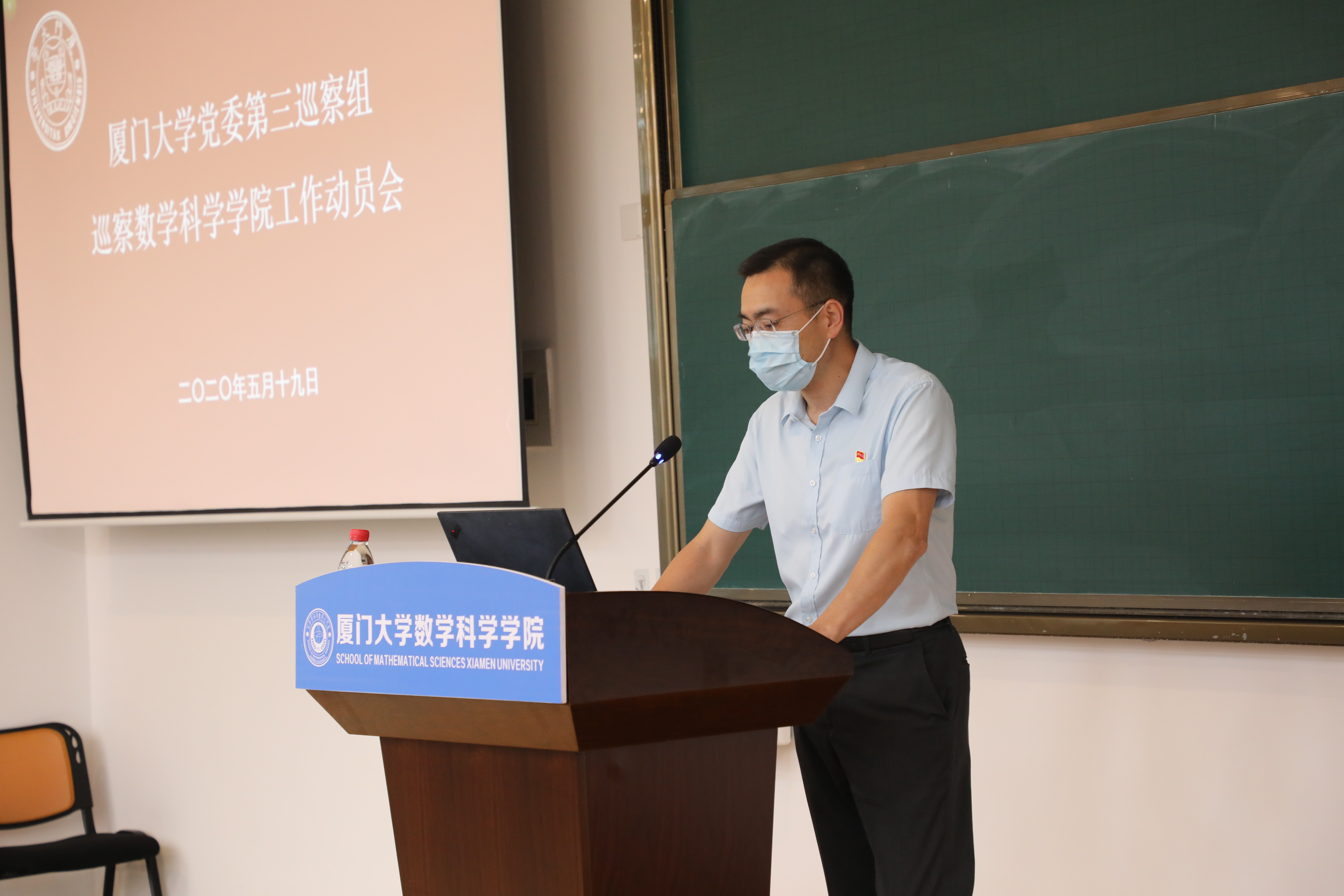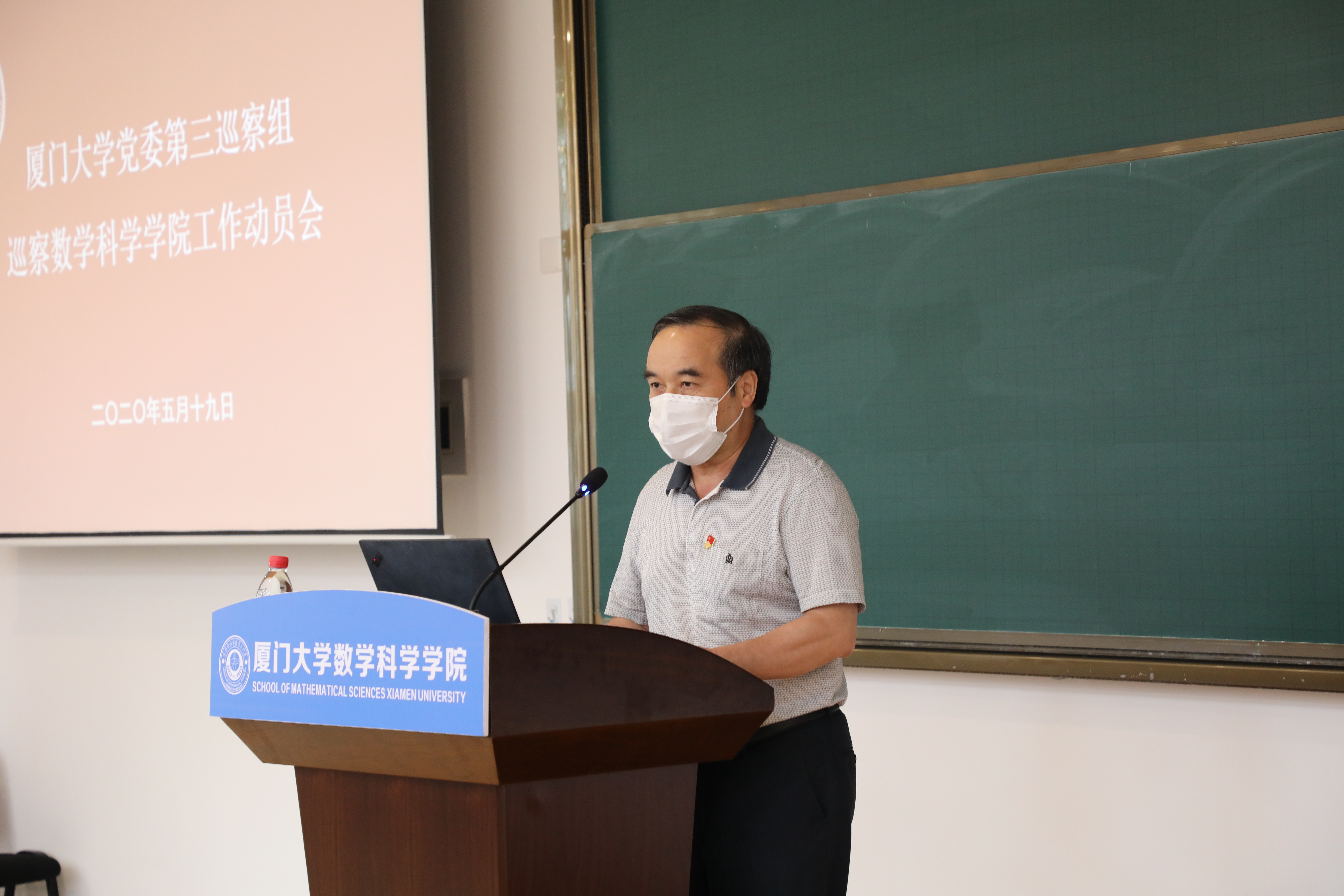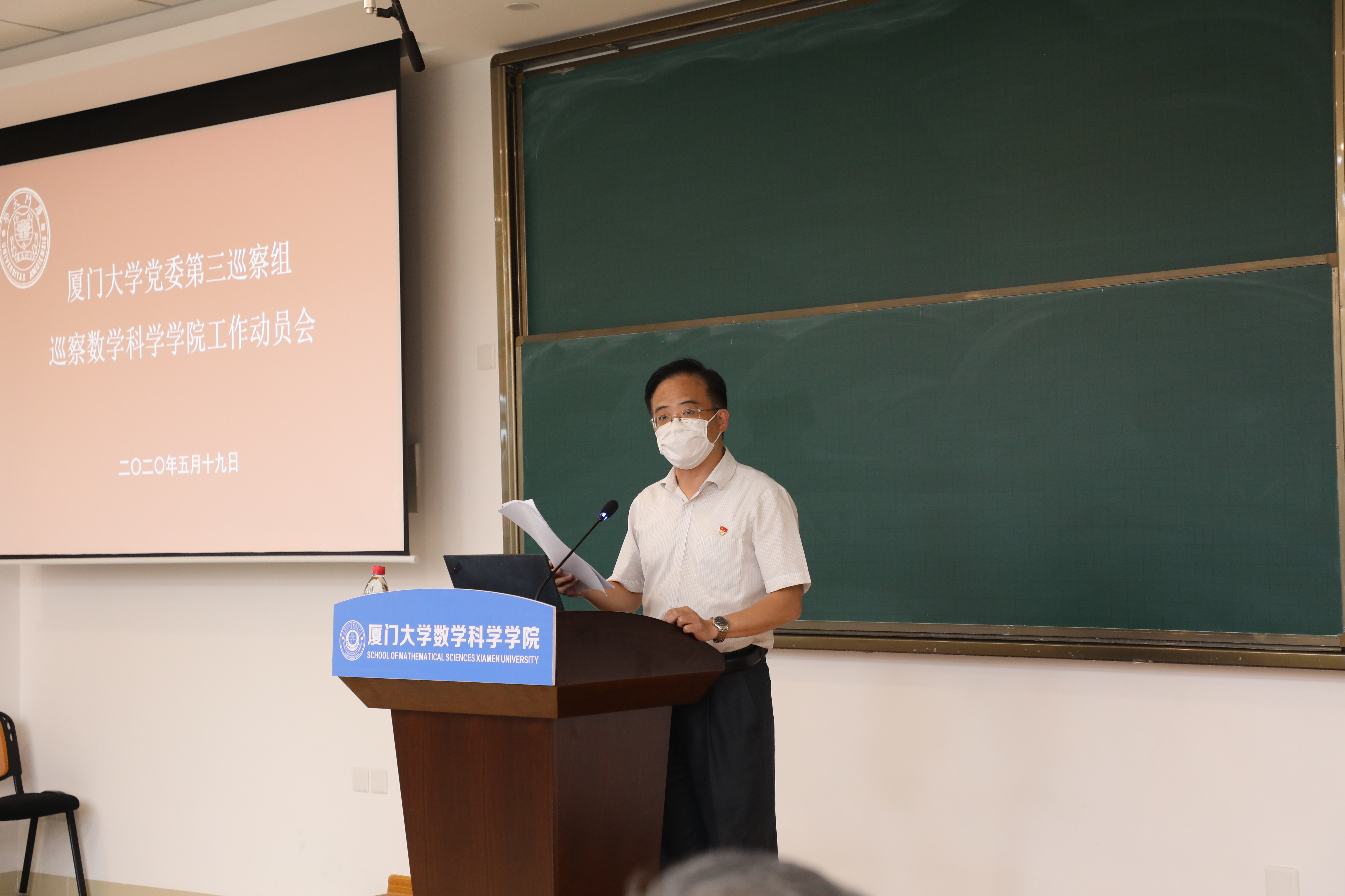 根据校党委统一部署和安排,2020年5月19日下午,中共厦门大学委员会第三巡察组巡察9001cc金沙工作动员会在海韵园实验楼106召开。校纪委副书记、纪委办主任、巡察办主任林金枝,巡察组组长、能源学院党委书记孙梓光,副组长、外文学院原党委书记/海外教育学院原党总支书记林自和,巡察组成员、人事处副处长兼教师工作部副部长王晓丽,审计处副处长洪少丹,外文学院党委副书记杨云良,电子科学与技术学院党委副书记唐拥华,联络员郑建斌、王淑君出席大会。学院党政领导班子全体成员、全体教职工及退休同志代表参加大会。会议由学院党委书记黄宝秋主持。