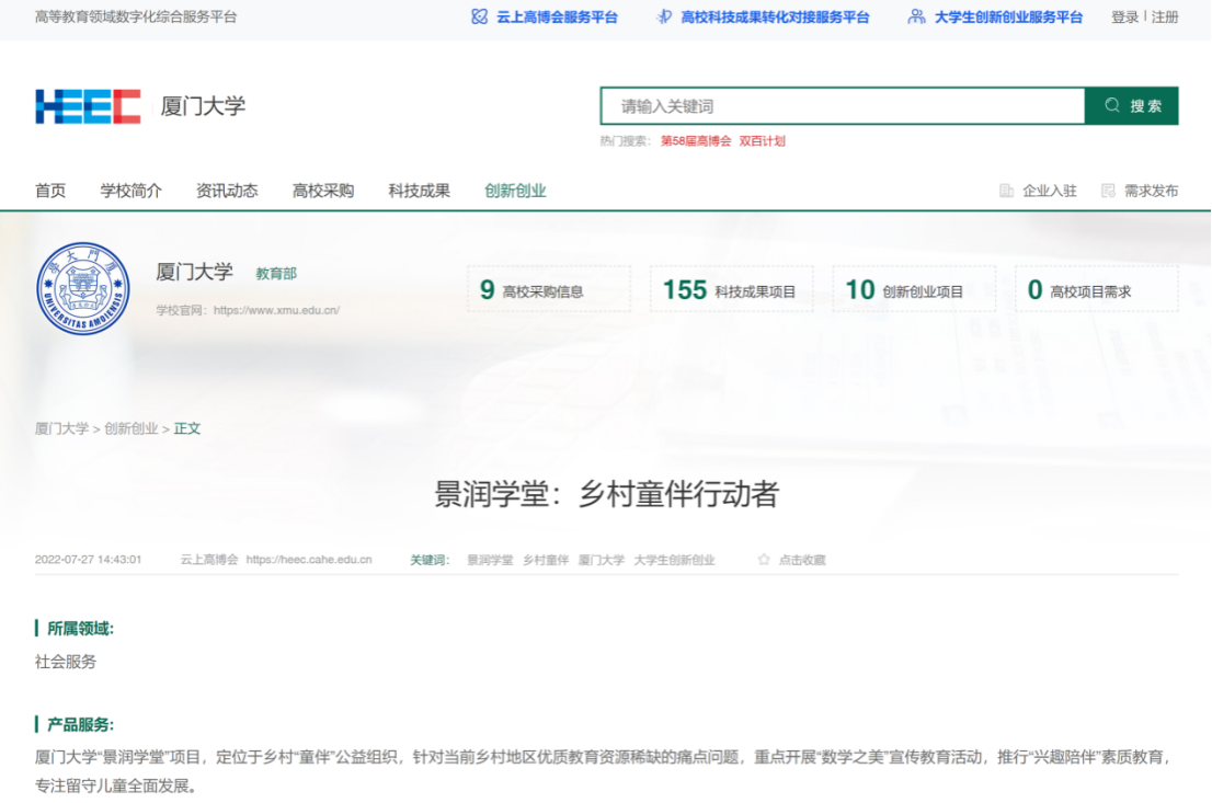 喜报|我院“景润学堂:乡村童伴行动者”项目入选中国高等教育学会“实践创新·大学生创新创业成果展”