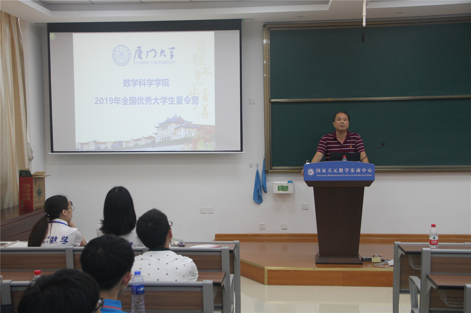 7月13日上午,在建南大礼堂举行厦门大学2019年全国优秀大中学生夏令营开营仪式,我院被表彰为2018年全国优秀大学夏令营工作先进单位。13日下午,在海韵园校区实验楼106教室举行学院夏令营开营式,陈国强副书记、张剑文副院长、系主任夏超教授、杜魁教授等人出席开营仪式,陈国强副书记主持开营仪式。在开营式中,张剑文副院长代表学院向参加本次活动的同学表示诚挚的欢迎,并向同学们介绍了学院的历史发展、学科建设、师资队伍和人才培养等方面的概况,让同学们对学院的招生政策及学科现状有较为全面的了解;陈国强副书记进行安全教育,强调宿舍管理条例,预祝同学们在活动期间收获满满。随后,各系的教师代表向营员们详细介绍了各研究方向及导师情况。