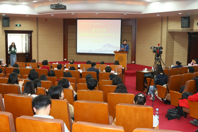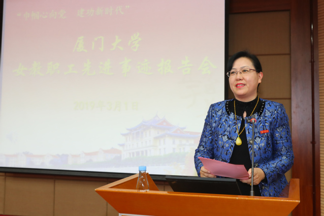 3月1日下午,在“三八”国际劳动妇女节109周年来临之际,我校在克立楼三楼报告厅举行“巾帼心向党 建功新时代”——厦门大学女教职工先进事迹报告会,宣传先进典型,展示巾帼风采。副校长邓朝晖出席报告会。校工会副主席、校妇委会副主任秦红梅主持。