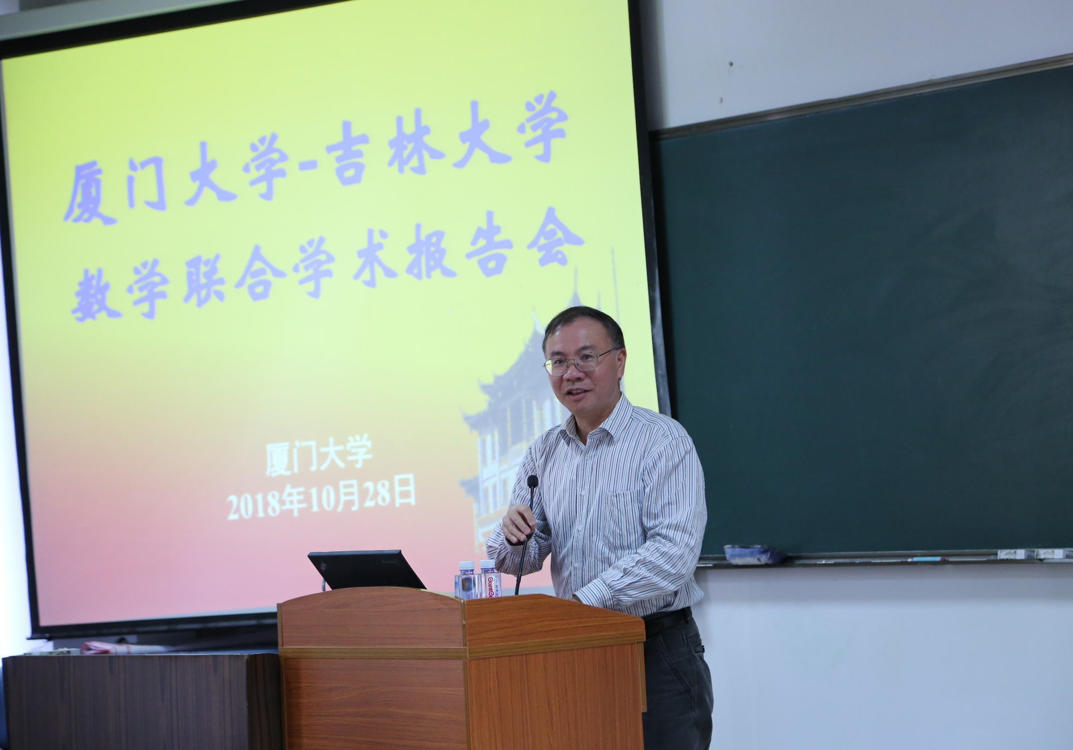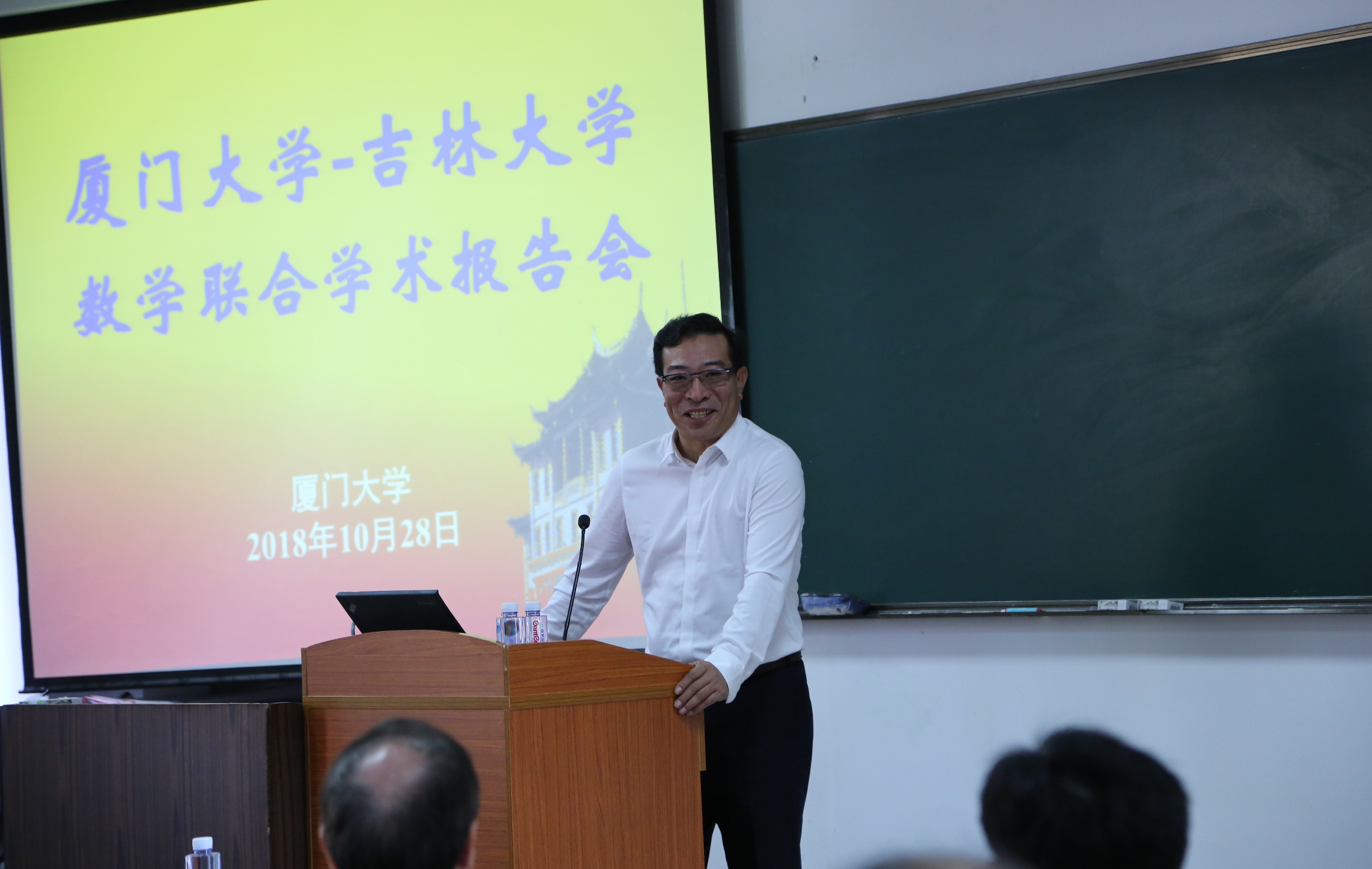10月28日,厦门大学-吉林大学数学联合学术报告会在海韵园实验楼105举行,吉林大学9001cc金沙李辉来院长、王德辉副院长、张然副院长、陈续升副院长等一行13人参加了本次活动;我院谭绍滨院长、陈国强副书记、张剑文副院长、邱建贤副院长、金贤安副院长、刘永建副院长和师生代表出席了学术报告会。