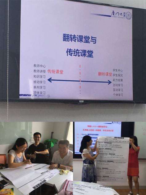 图:杜妮老师参加翻转课堂教学沙龙(上)和比赛现场(下)