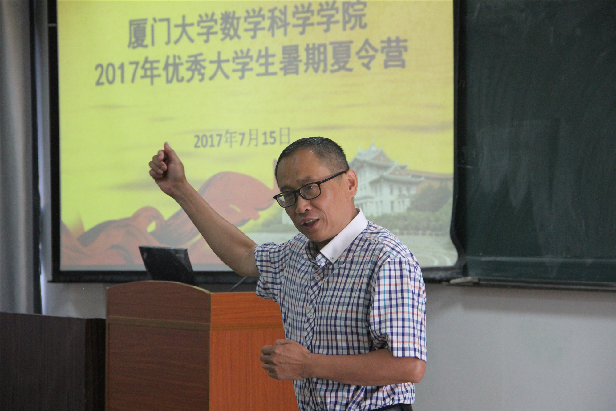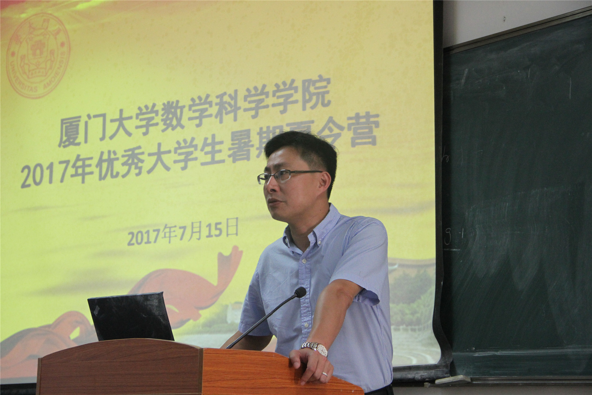 7月15日上午,学院在海韵园校区实验楼105教室举行夏令营开营式,院长林亚南教授、院党委书记张明智老师、院团委书记陈向柳老师参加开营式,学院党委副书记张剑文教授主持开营式。在愉快而热烈的气氛中,林亚南院长代表学院向参加本次活动的同学表示诚挚的欢迎,并向同学们介绍了学院的历史发展、学科建设、师资队伍和人才培养等方面的概况,让同学们对9001cc金沙有更清晰的认识。张明智书记从美丽校园、和谐学院的角度向同学们介绍了我校浓厚的人文情怀以及我院在硕士、博士招生方面的政策,特别介绍了学院对直博生以及重点高校学生来我院读研的奖励计划,鼓励同学们选择厦大、选择数学。最后,陈向柳老师作安全教育,强调宿舍管理条例,预祝同学们在厦大期间收获满满。