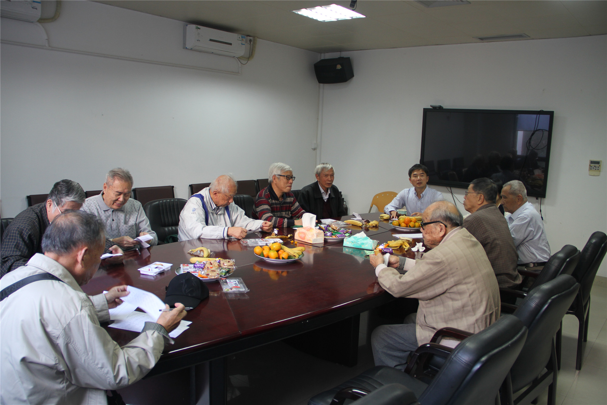 张明智向各位退休教师通报了学院今年开展的主要工作和学院发展取得的成绩,以及即将进行的学院行政领导班子换届和党员领导班子民主生活会,听取与会代表的意见建议。座谈会同时了解了学院退休老师的健康状况,目前,学院年满80周岁以上的教师有13位。新年来临之际,学院将开展危重病号和80岁以上的教师代表慰问活动。