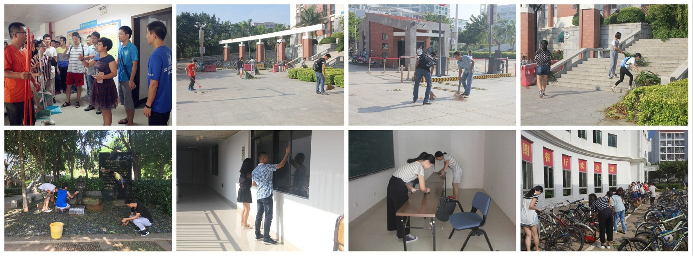 16日上午8点,学院召集学生党员、干部突击队逾50人,分别在海韵园、学生公寓进行灾后卫生打扫工作。
