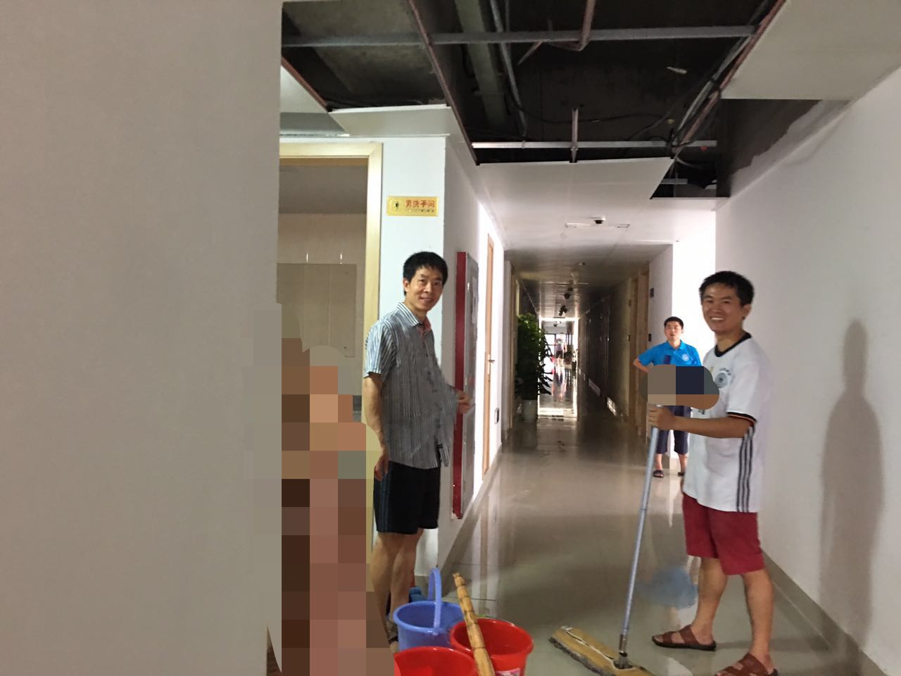 台风过后,15日一大早,学院即组织检查学院辖内所有办公室、会议室、报告厅、自习室、讨论室等公共场所,并立即开展灾后清理工作,将掉落铝扣板统一收拾归位,清理大块垃圾和走廊及自习室积水。同时,张明智书记、张剑文副书记和辅导员陈淑铌走访学生宿舍,慰问学生