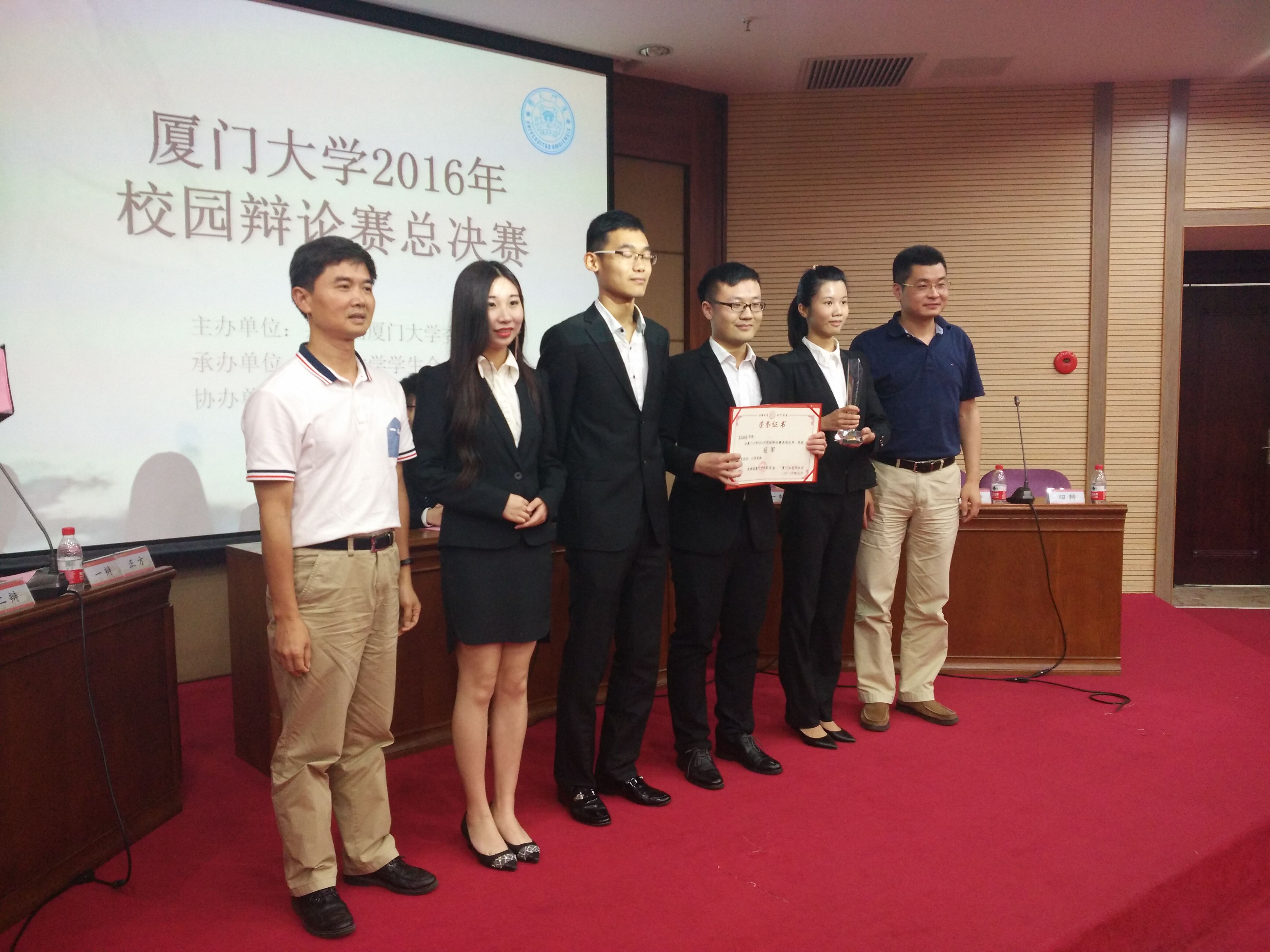 最终,我院辩论队夺得了2016年厦门大学校园辩论赛冠军。校团委书记陈怀锋和学院党委书记张明智为辩论队颁发了证书和奖杯。