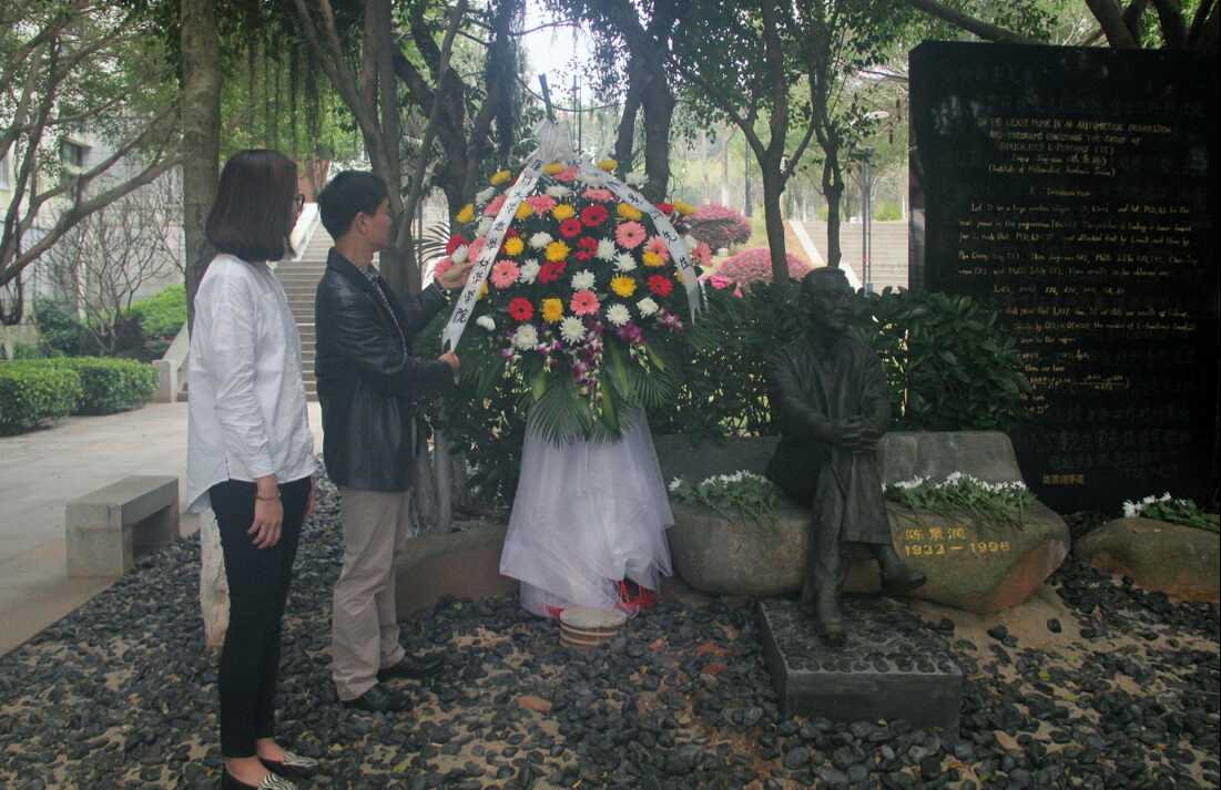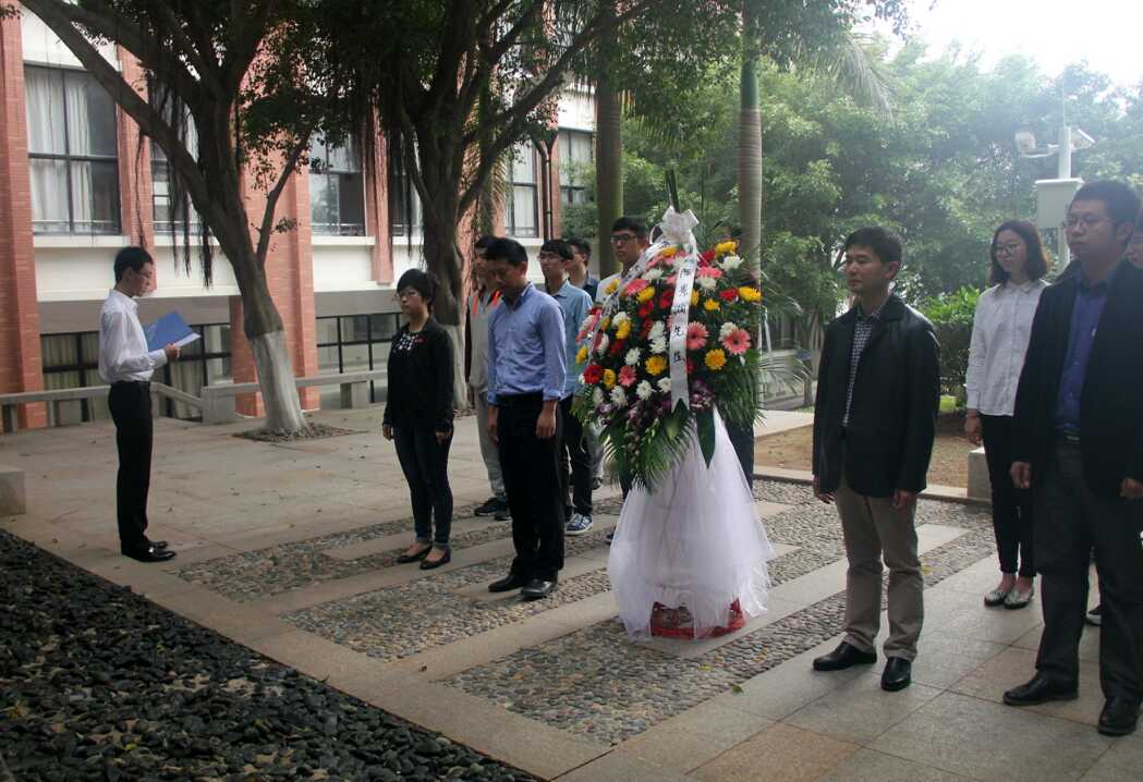 2016年4月4日清明节上午,9001cc金沙师生代表在海韵园祭扫陈景润先生。本次祭扫活动由学生会主席封立成主持,学院党委书记张明智、办公室主任林智雄、团委副书记石义凯、辅导员陈淑铌、兼职辅导员林丽玲及20名学生代表参加。