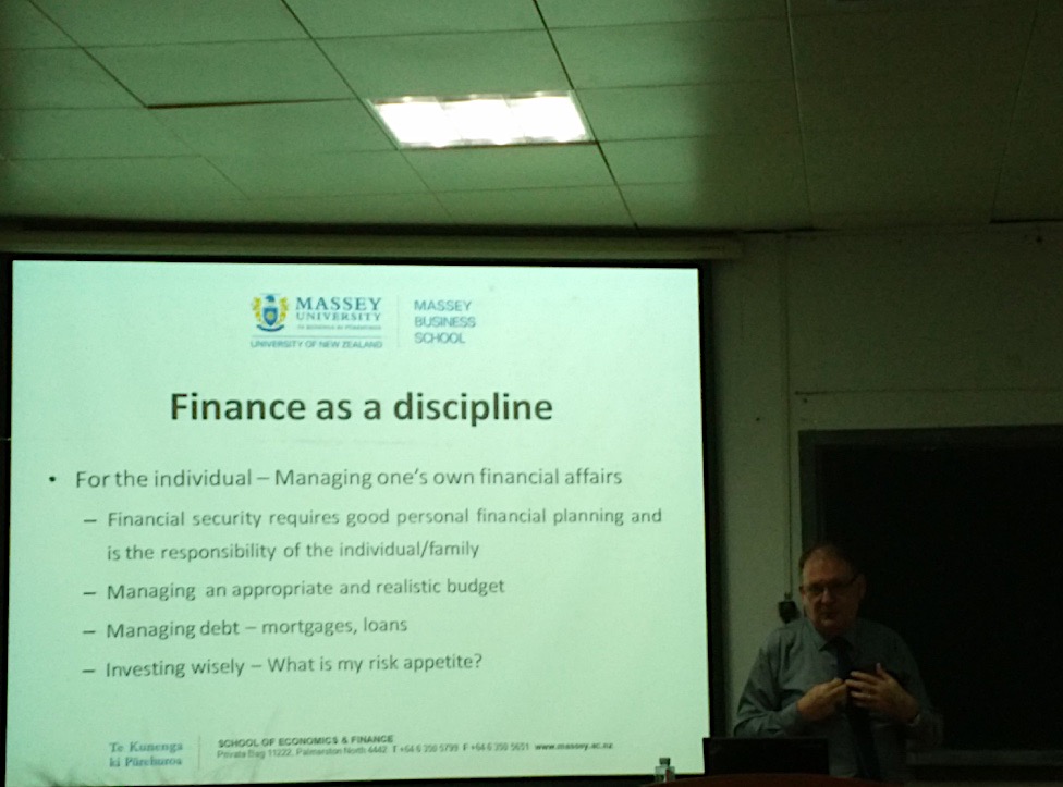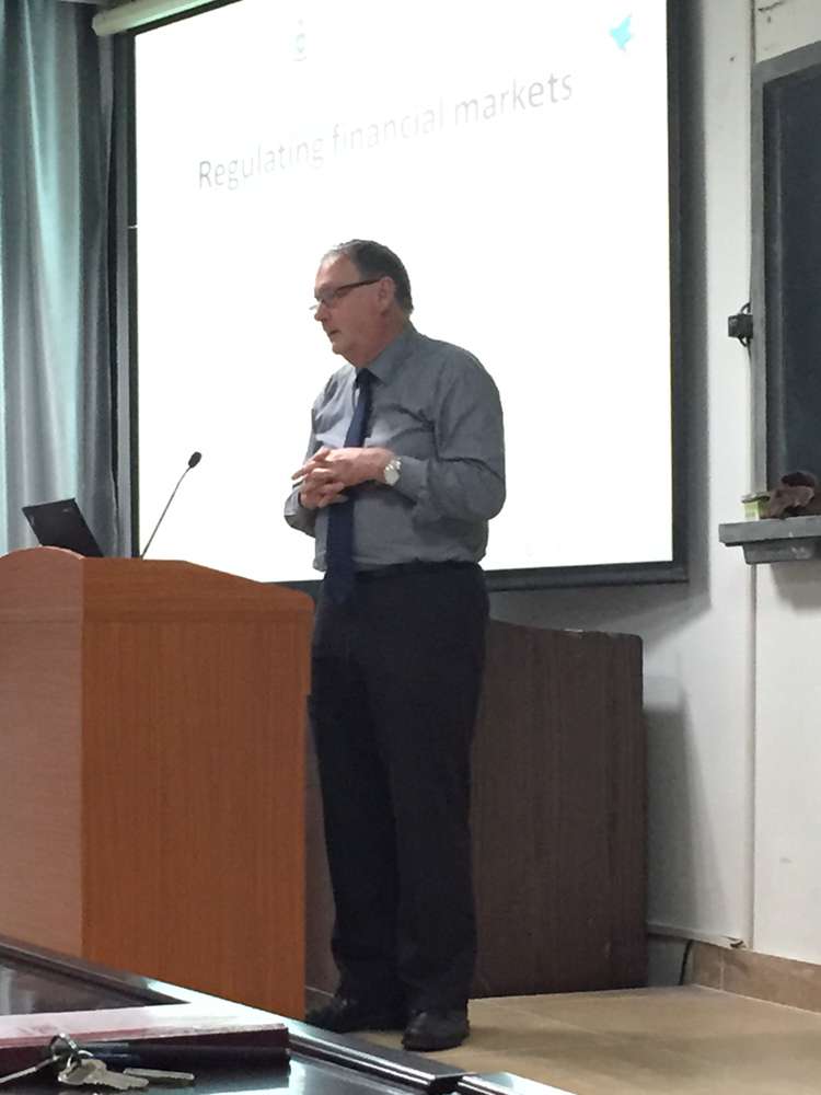 11月6日晚,新西兰梅西大学金融学院院长Martin Young 教授在海韵实验楼105为我院同学带来了一场题为《中国在新地全球经济中扮演的重要角色:亚洲基础设施投资银行》的精彩讲座。讲座由学院党委书记张明智主持。