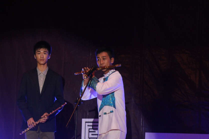第二十个节目,正是由我院15级霍逸舟、邱崟琳同学对唱的《神话》,还有14级桂亦康同学弹琴、15级陈尧和庄铭楷同学以笛伴奏。如此精彩的表演引得观众欢呼不已。