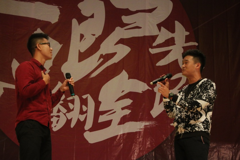 接下来是我院四个15级男生同台演出的英文歌曲《you arise me up》,歌声厚重却不失音准音调,展现出数院磅礴大气又严谨的气魄。这首歌曲唤醒起人们心中沉寂的勇气,鼓励大家勇敢前行,不少痴迷的观众还激动地撕喊着。浑重的歌声在报告厅中回荡,感人至深。