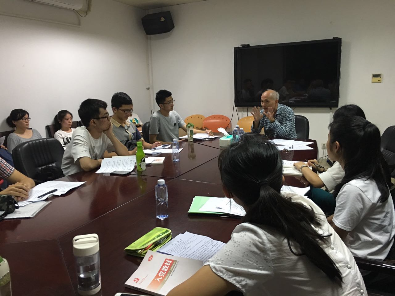最后,学院党建组织员林建华老师也和青年们对入党动机进行了交流讨论。林老师说,大学生要入党,一定要清楚自己为什么要入党,要多关注党的动态、学习党的理论,培养自己对党的感情。林老师作为一名50后的老党员,向90后的入党积极分子们介绍了那个激情燃烧的岁月里,大家对党的热爱、感激之情,入党是所有青年人的一种信仰。林建华老师嘱咐大家,现在的条件都变好了,但是我们为人民服务的初衷不能变。大学生要不断的提高自己、锻炼自己,把自己的专业学好,练好为人民服务的本领,提高自身的综合素质,才能更好的发挥党员的先进模范作用。