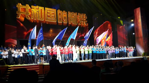 2015年9月25日晚,由中国科协联合教育部、共青团中央、中国科学院、中国工程院主办的“共和国的脊梁”专题节目在北京人民大会堂大礼堂上演,我校原创话剧《哥德巴赫猜想》全体演职人员参与节目演出。