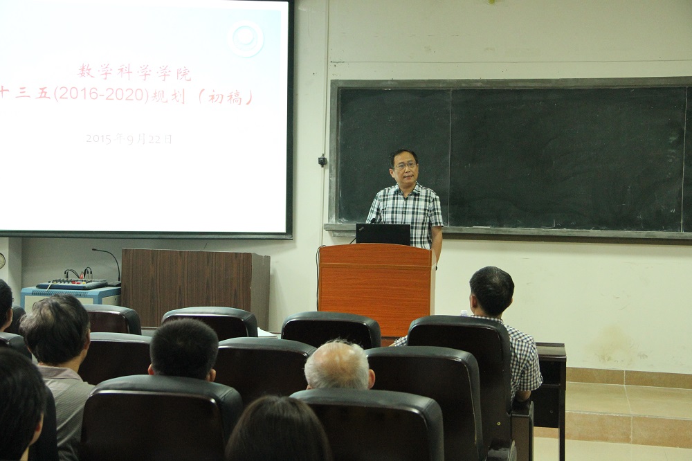 林亚南院长详细介绍了学院“十三五”规划(草案)内容,全面征求修改意见。在即将过去的“十二五”规划期间,学院各项工作得到了较快发展。师资队伍质量明显提高,新增了国家特支计划等高层次人才,引进和培养了一批优秀人才。学院的学术氛围浓厚,学术交流频繁,研究成果丰硕。学院每年获批的各类基金、经费稳步提升;发表的SCI文章保持在120-150篇左右,ESI国际学科排名进入全球前1%,实现学院百篇优秀博士论文奖零的突破。人才培养取得了质的飞跃,从基地班建设到“拔尖计划”学生培养,成绩显著,质量提升;学生参加全国大学生数学竞赛、数学建模竞赛等连获多项一等奖。他对症下药,分析总结了学院发展过程中存在的问题和困难。面对未来,林院长充满信心和期望,他强调,厦大数学学科仍有很大的发展空间,需要全体师生齐心协力,共同奋斗。他指出,学院要始终朝着“一流学科”的建设目标努力,加快国际化进程。要从“高原化”向“高峰化”发展,引进、培养更多杰出人才;要加大力度提高研究生生源质量,着力扩大博士后队伍,不断提高人才培养质量。未来五年,要谋划建设好“厦门大学数学中心”,全力以赴实现学院”十三五“规划制定的目标,推进学院各项事业再上新台阶。