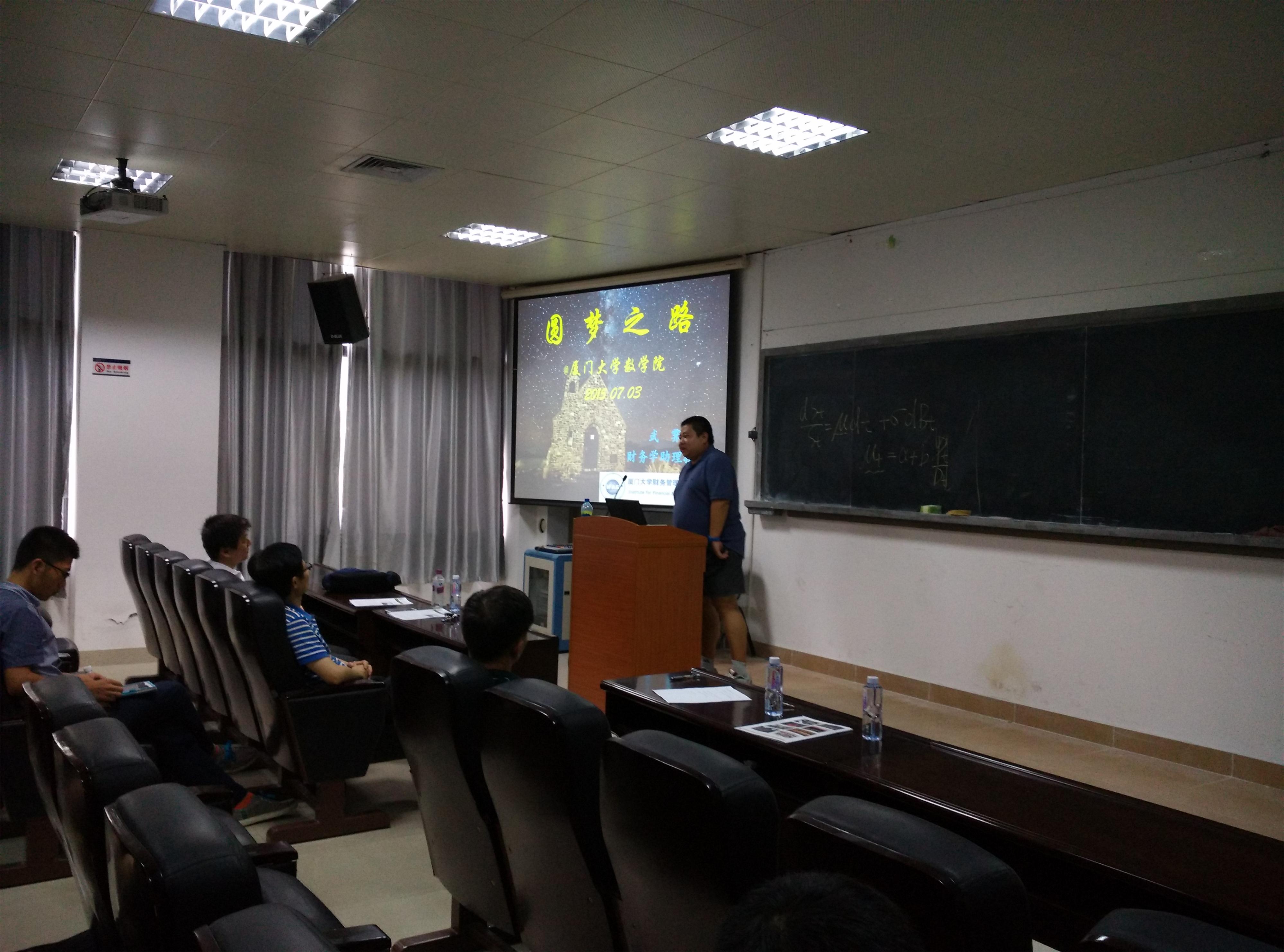 随后,厦门大学财务与会计研究院副教授武霁以圆梦之路为主题,以出国生涯规划为内容作了介绍,为同学们出国提供指导和帮助。他强调,同学们要认识到自我人生长远规划的重要性,因为一是受到工作的年龄限制,二是自身长久的发展问题,希望出国同学要提前规划准备。他介绍了在申请出国中同学们容易遇到的一些问题。如选择学校,他随之介绍了一些学术水平和国际排名较高、项目较好的海外名校,并进行了对比分析。武霁副教授的介绍让大家更加立体的去了解这个世界,更加务实、缜密的规划自己的人生,为同学们提供了更多的选择。