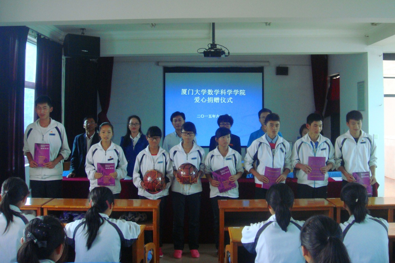 揭牌仪式上,我院向双河民族中学捐赠了一批电脑、课外书籍、篮球等物资,丰富学生的课余文化生活。张莉华校长感谢我院师生的爱心捐赠,从人员、物资和精神等方面给予了双河民族中学师生的大力支持。她说,在为期三周的实践过程中,她从实践队员的身上看到了厦大“自强不息,止于至善”的精神,为中学生们带来了满满的正能量,帮助中学生开拓视野,增长知识,立志成才做出了积极的贡献。