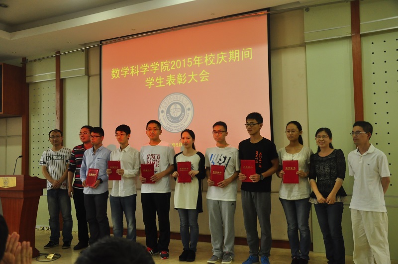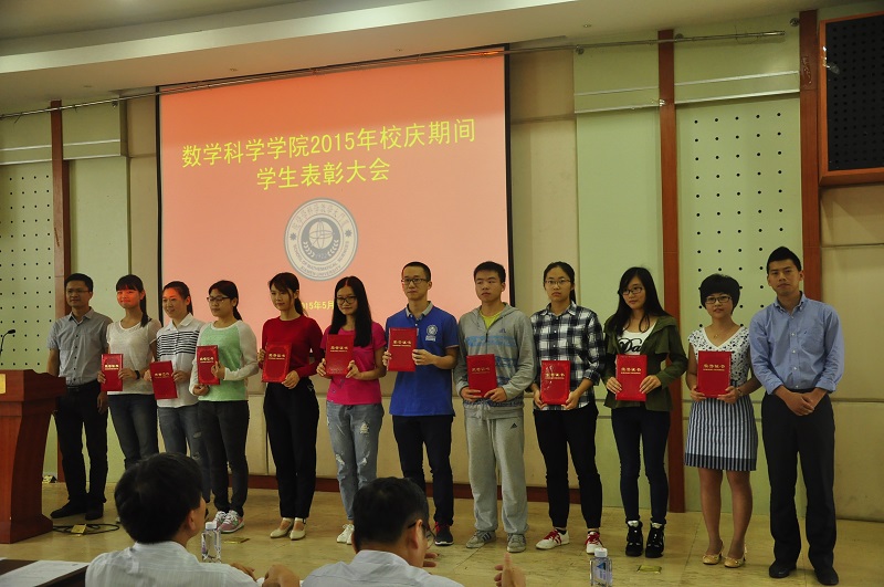 最后,林亚南院长为大家做了精彩讲话。他对获奖同学表达了由衷的祝贺, “参加颁奖大会总是开心的,因为这说明9001cc金沙的同学们都是给力的。每一次在颁奖大会上,我都似乎看到了你们成长的步伐,这是最值得高兴的地方。”院长说,我们学院发展得越来越好,我们的本科教育得到了社会各界的认可,得到了全国数学界的认可,我们每一位同学都处在一个很好的学习环境里。然而光靠外部环境是不够的,光靠企业赞助也是不够的,学习是否能取得成绩,最重要的还是要靠个人的努力。为此,院长向所有同学提出了以下几点要求:首先,是要更加勤奋,快乐总是和勤奋联系在一起。如果一个学生考试挂科,作业都不会做,那他是无论如何也无法快乐的。唯有勤奋,努力的学习,才能从中找到成就感,幸福感,这时的快乐才是真正的快乐。除了勤奋之外,更应该在学习过程中学会思考。每当你在面临选择,取舍,要做决定时,都要仔细想想,你对你将要选择的专业、方向、企业或是职业真正了解吗?你选择的动机是什么?你想要达到什么目标?慎重思考好这些问题后,就勇敢往前走,不要再犹豫,更不要怕后悔,因为你要相信自己的选择,因为那已经是经过了深思熟虑的。同时,院长再一次强调,数院的新生应该把精力更多地放到学习上,而大二大三的学生则应该多多参加一些有益的社会实践,因为我们是生活在一个人与人交流相处的社会,而这是一门在书本中无法学到的学问,我们需要自己走出去,去体验,去实践,去交流,去分享,让自己身处一个团队中,与大家一起共同进步成长。最后,院长告诫我们:荣誉是成长成才过程中的见证与动力,而非目标,我们应该正确看待荣誉,得到了,开心,没有得到,也并不介意,不过是来年继续努力。要做一个阳光的,胸怀宽广的,大气的人,要始终相信,只有大家好了,你才会更好。