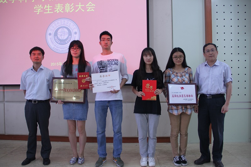 林亚南院长和张明智书记为2014年度厦门大学先进班级体(标兵)、五四红旗团支部(标兵)获得班级代表颁奖