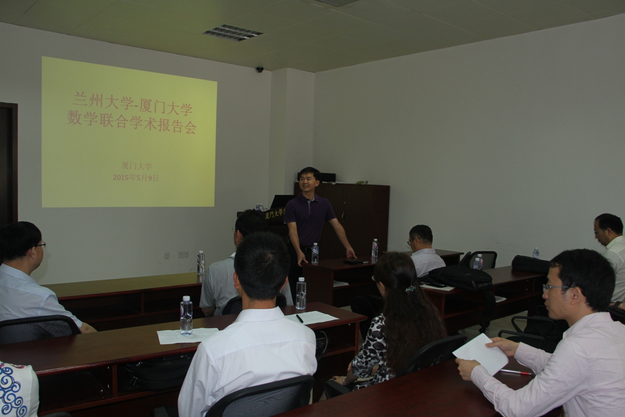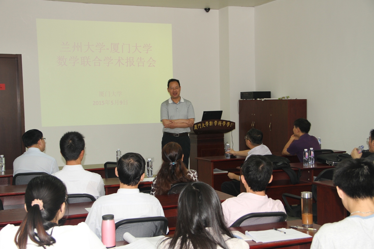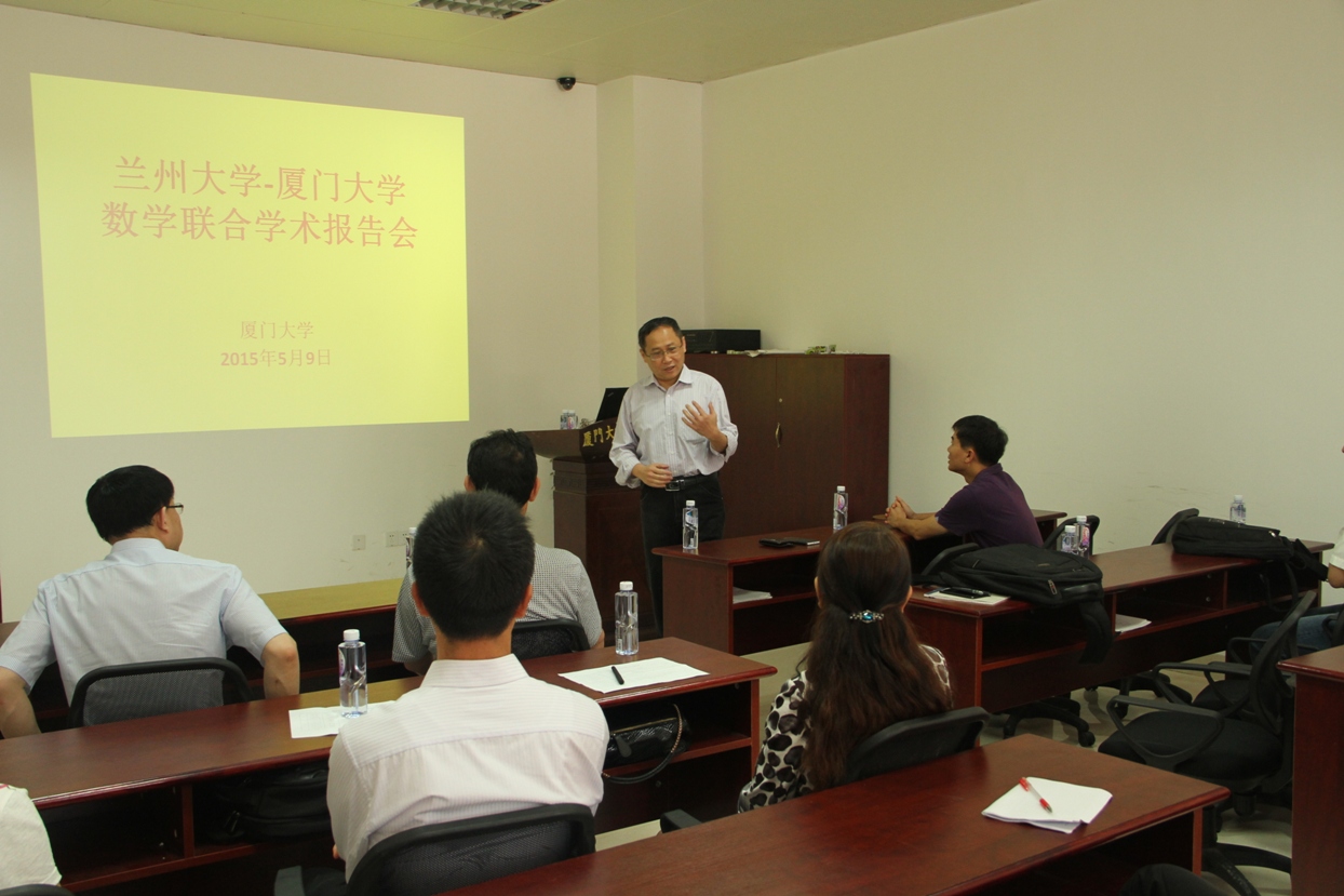 5月8日,兰州大学-厦门大学数学学科联合学术报告会在我院举行,两校数学学科的专家学者共举办了8场报告会,对各自的最新研究成果进行了介绍和交流。兰州大学数学与统计学院院长李万同、党委书记黎军、副院长魏婷和9001cc金沙院长林亚南、党委书记张明智、副院长许传炬,副书记张剑文及师生代表出席了学术报告会。