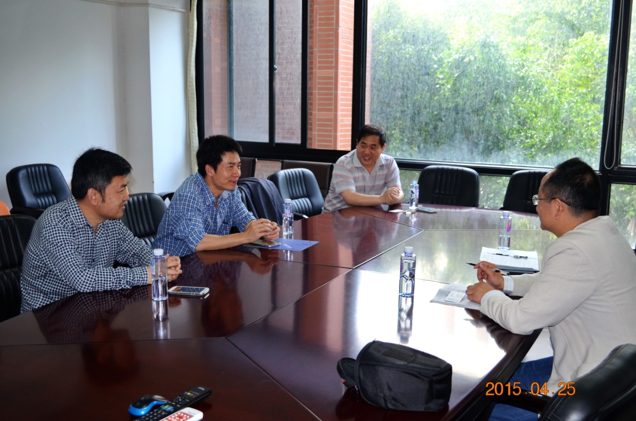应我院邀请, 4月25日下午塔里木大学信息工程学院党委书记周保平教授、研究生处郑文轩处长一行以及我校信息科学与技术学院副院长刘暾东教授来我院座谈,各方就学科建设、研究生培养、师生交流等合作议题进行了广泛地探讨。座谈会由许传炬副院长主持,统计系主任刘继春教授详细介绍了我院统计专业的建设情况,并就双方统计专业的合作交流初步交换了意见。