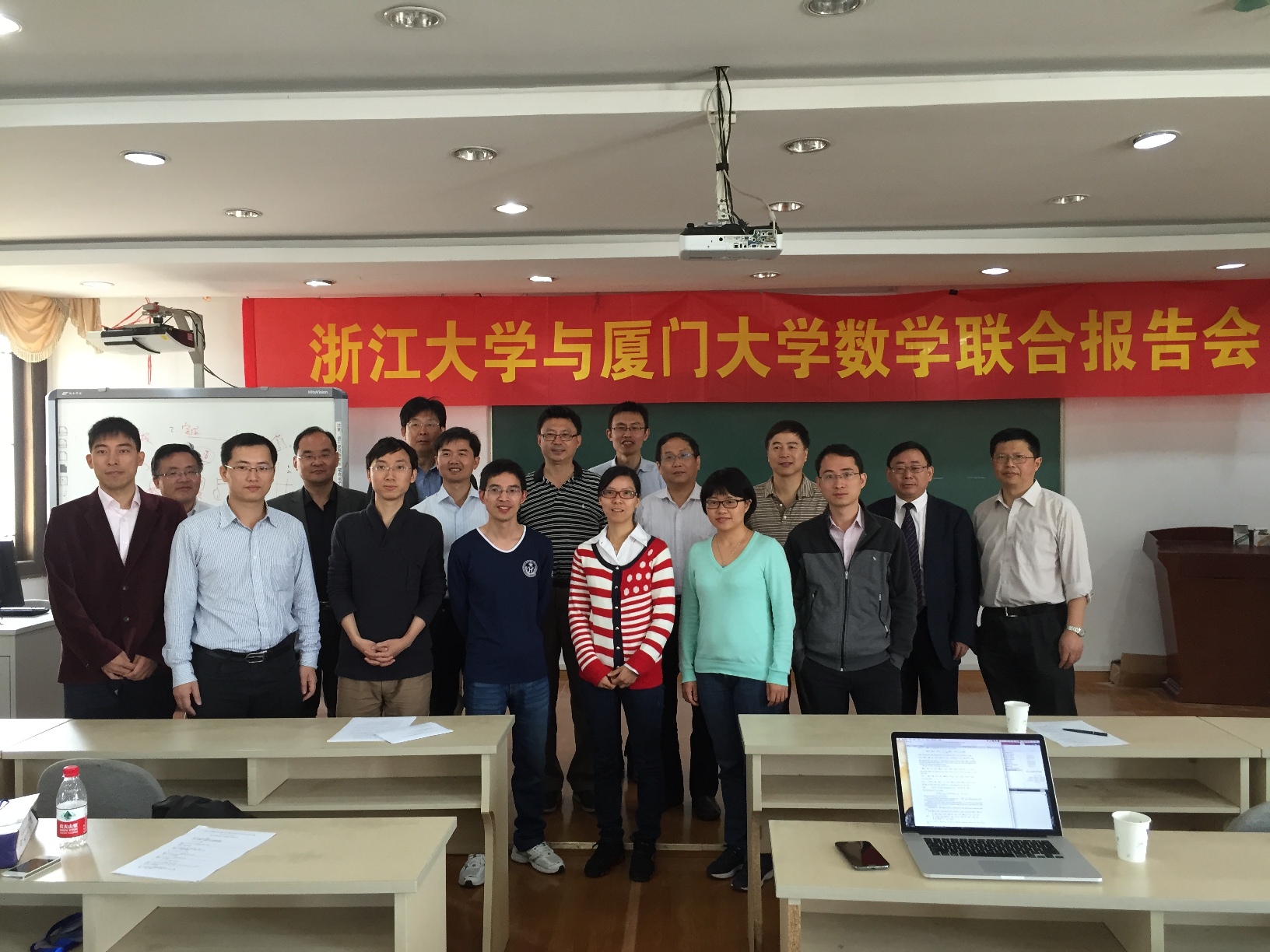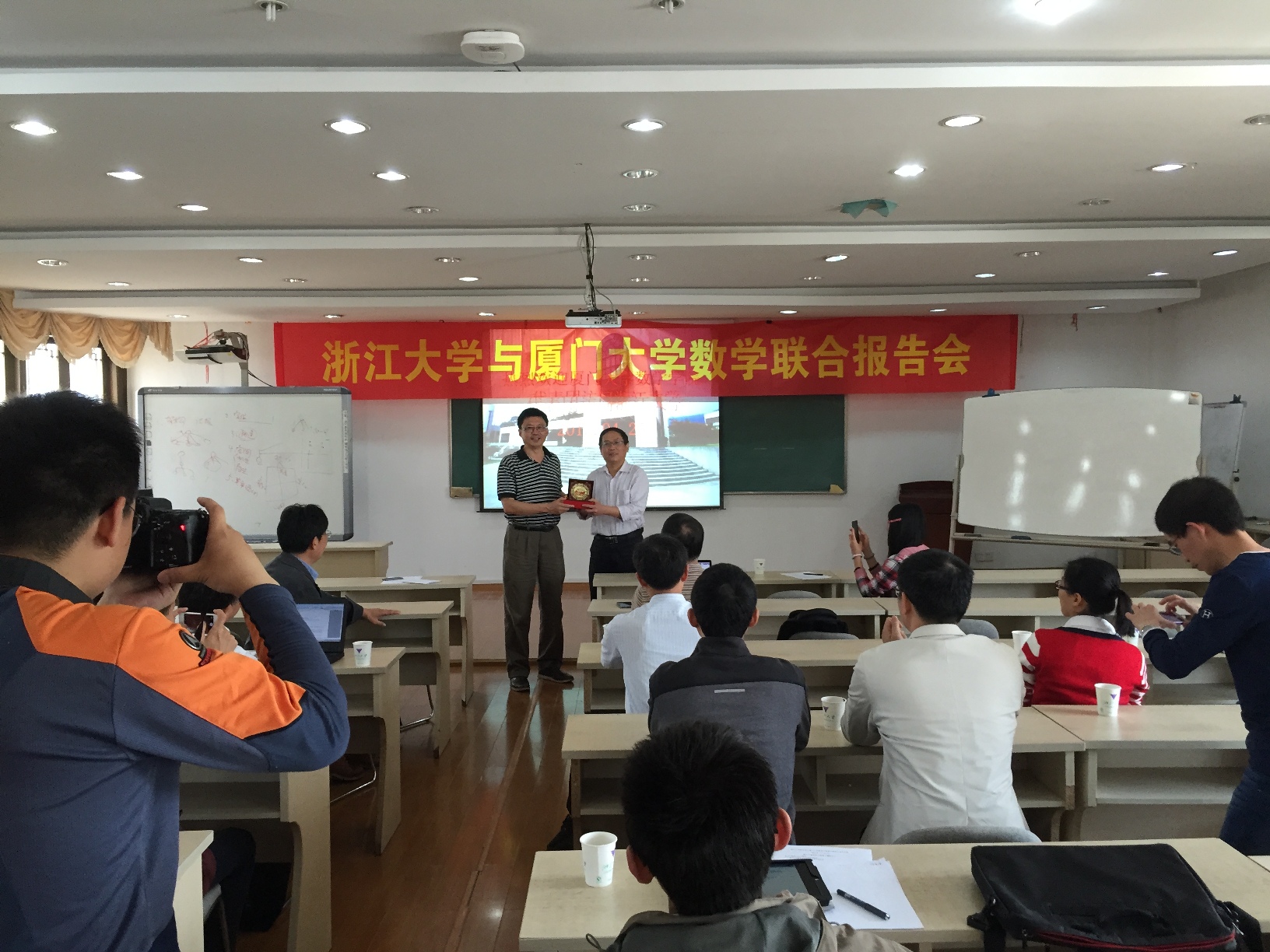4月25日,为期一天的联合学术报告会在浙江大学数学系报告厅举行。浙江大学数学系主任包刚教授在开幕式上致辞,热情欢迎我院代表团的到访。他简要介绍了浙江大学数学学科特点,回顾了两校交流历史,希望双方保持学术交流的传统,继续举办联合学术报告会,保持密切的联系,营造学术氛围,共同推进两校数学学科的进一步发展并预祝报告会取得圆满成功。我院林亚南院长感谢浙江大学的邀请和热情接待,饱含深情的回顾了两校悠久的历史渊源。他说,50年代学科调整时,浙江大学数学系三位教师厉则治、张鸣镛和林振声克服困难,南下支持厦门大学数学学科的建设,奠定了坚实的基础,做出了巨大的贡献,开辟了厦门大学数学学科发展的辉煌历史。长期以来,两校交流密切,感情深厚,非常感谢浙江大学对厦门大学数学学科的发展给予无私的帮助和大力的支持,期待友谊之花常开,学术交流持续。