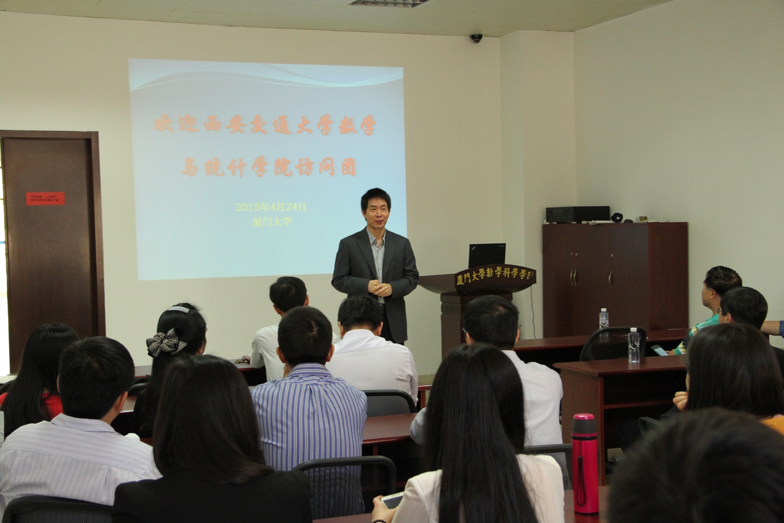 朱旭书记对我院的周到安排表示感谢,他说,厦门大学和西安交通大学数学学科有良好的合作前景,历史渊缘很长,在发展中各自形成自己的特色,厦门大学数学学科许多好的做法是我们学习的榜样,通过此次访问一定能取得很多成效。他欢迎9001cc金沙的毕业生前往西安交通大学学习和工作。