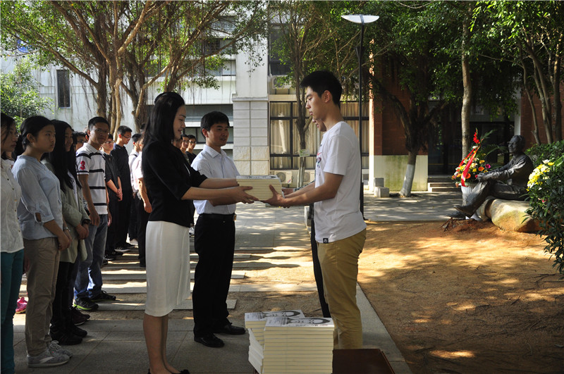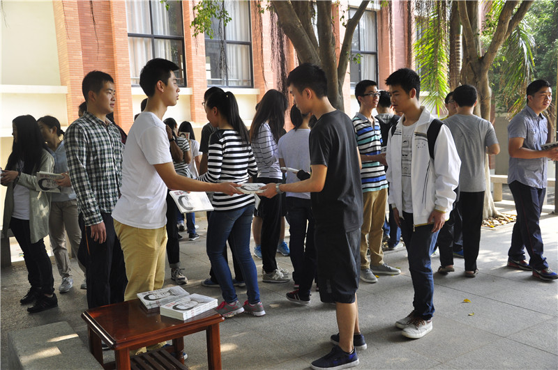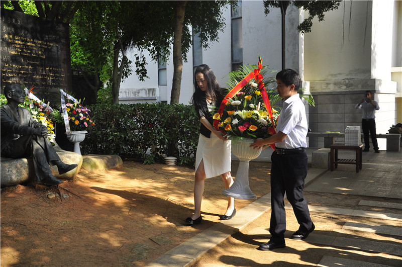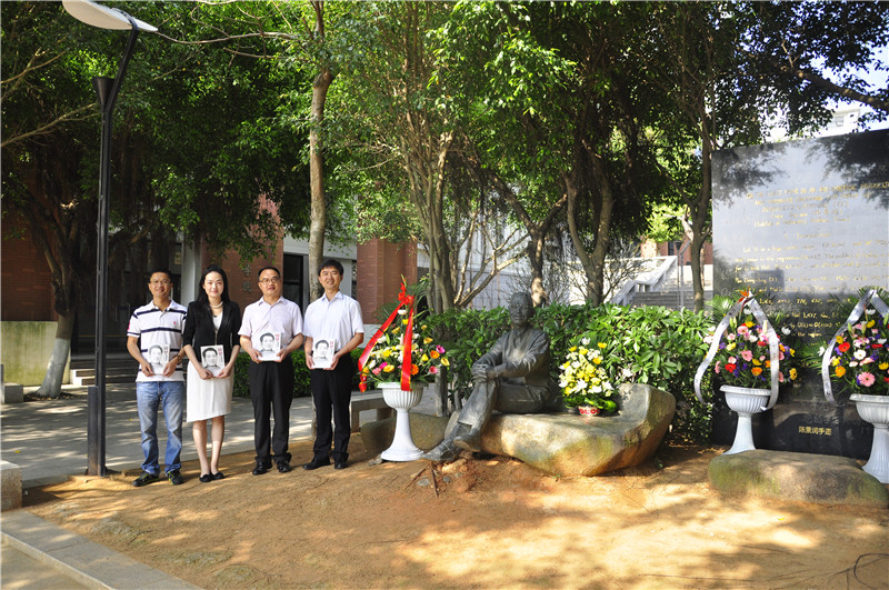 2015年4月5日上午,陈景润先生亲属宋凌女士与9001cc金沙师生代表在厦门大学海韵园共同祭扫陈景润先生。祭扫活动由学生会主席魏向主持,学院党委书记张明智、党委副书记郑诚明、团委书记陈向柳、兼职辅导员陈淑铌及50名学生代表参加了此次祭扫活动。