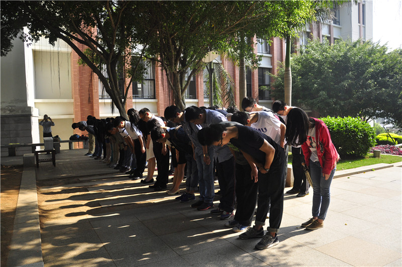 全体师生代表向陈景润先生铜像三鞠躬以表深切的缅怀之情。