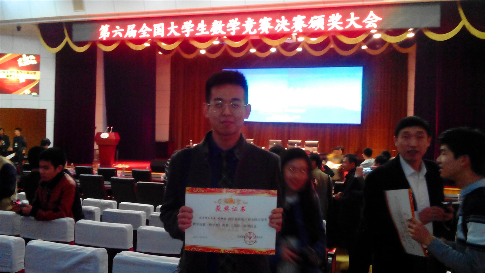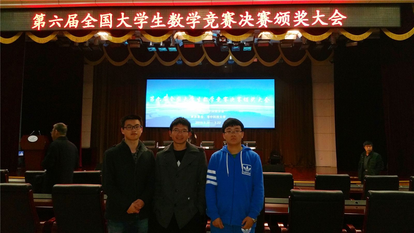 2015年3月21日,第六届全国大学生数学竞赛决赛在华中科技大学举行。我院负责组织选拔的三位学生通过福建赛区的选拔比赛,作为主力队员代表福建赛区进入了最后的决赛。三人全部获得二等奖。