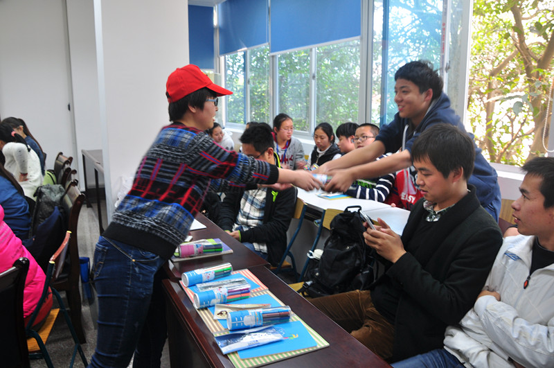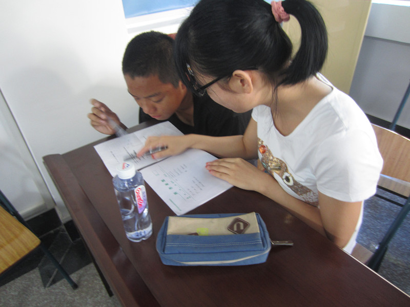 接下来,志愿者老师和同学们互相做了简单的自我介绍。在进行了简单的交流沟通后,老师和同学都有了一定的了解,现场气氛变得十分热烈。经过短短半个小时,12位老师和14名同学成功结对,其中贾翠满和王鹏鹏两位志愿者更是要各自承担对两名学生的辅导任务。结对结束后,老师和学生们各自分散,开始第一次的学业辅导。