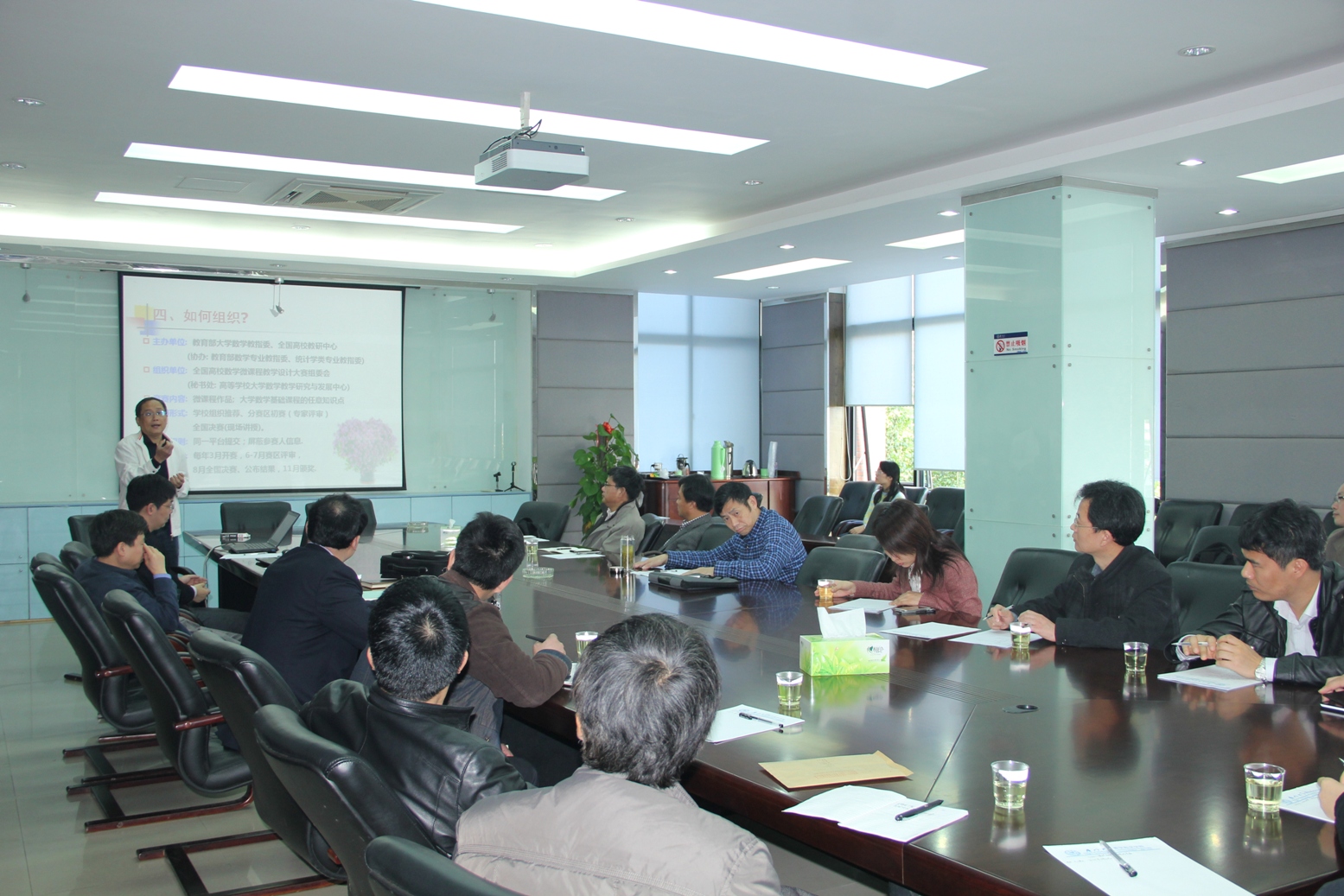为使得首届全国高校数学微课程教学设计竞赛顺利开展,我院于2月25日至27日承办全国高校数学数学微课程教学设计竞赛华东赛区组委会工作会议。来自山东、江苏、安徽、浙江、福建、上海和高等教育出版社数学分社的14位代表和我院的部分教师参加了会议。会议由林亚南院长主持。