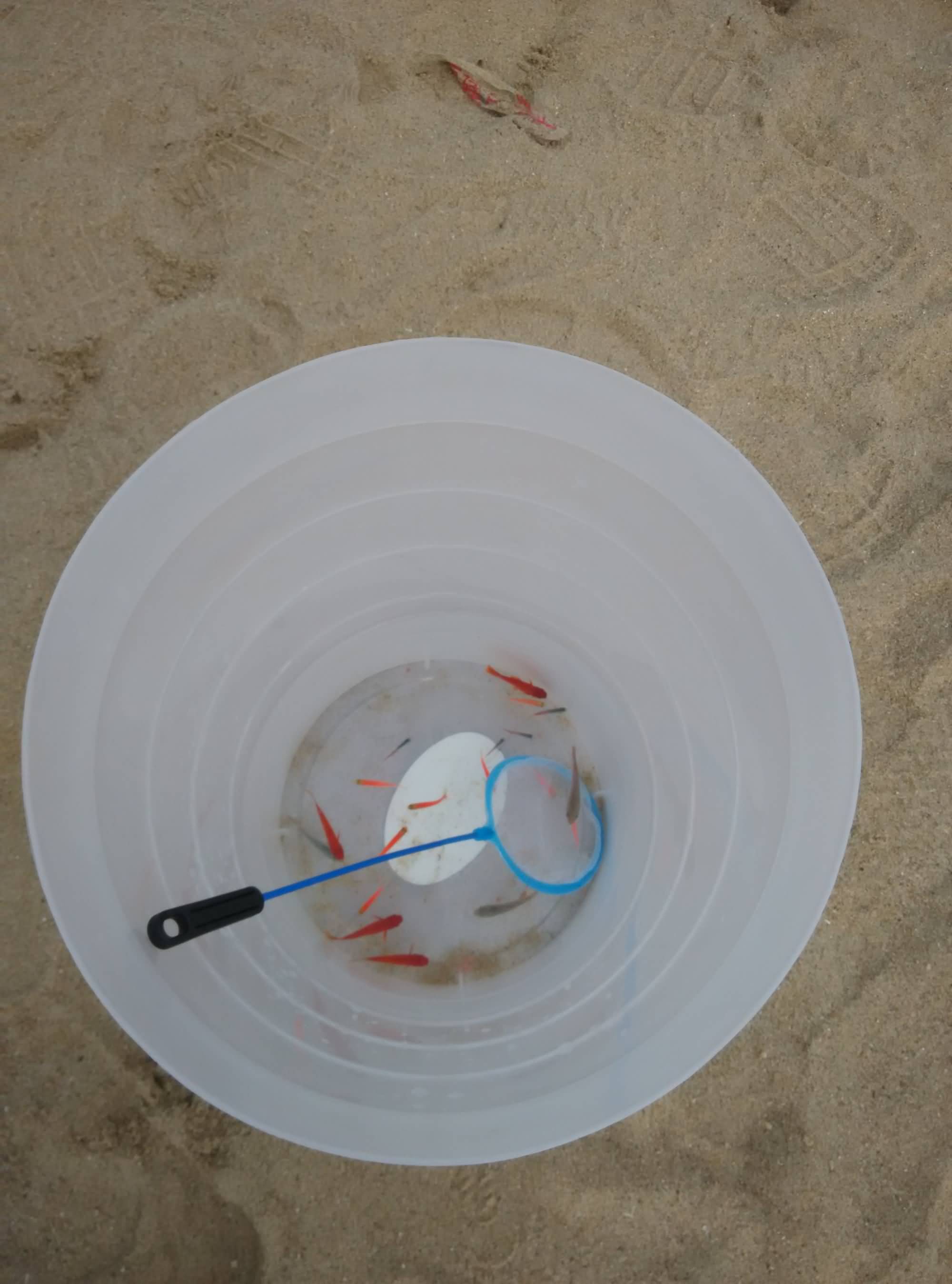 二是捞鱼比赛,要求小朋友们从规定的赛道出发,进行赛跑,先抵达终点者可以捞走小鱼作为奖品;