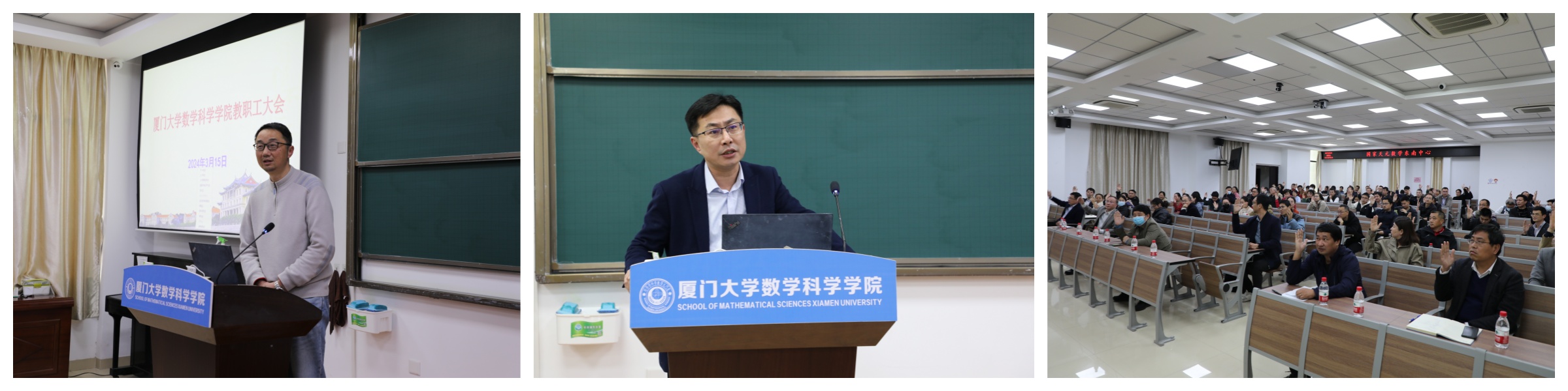 谭绍滨院长传达了全校行政系统工作会议精神,简要回顾了学院2023年行政工作,报告了2023年财务情况,部署了2024年重点工作。他肯定了学院在人才培养、学科建设、师资队伍建设、科学研究和国家天元数学东南中心等方面取得的成效。他强调,当前人才竞争日益激烈,要强化危机意识,加大人才引育力度,争取在高层次人才项目上有新进展;要加强博士后工作,努力吸引更多优秀人才;要重视人才培养质量,进一步提高毕业生升学率;要加强对外交流合作,积极为学生到世界名校学习创造机会;要建设好国家天元数学东南中心,努力争取更大工作新成效;要认真做好学院教师科研用房调整分配工作,把好事办好做细;要依法规范使用经费,开源节流,提高经费使用效益。