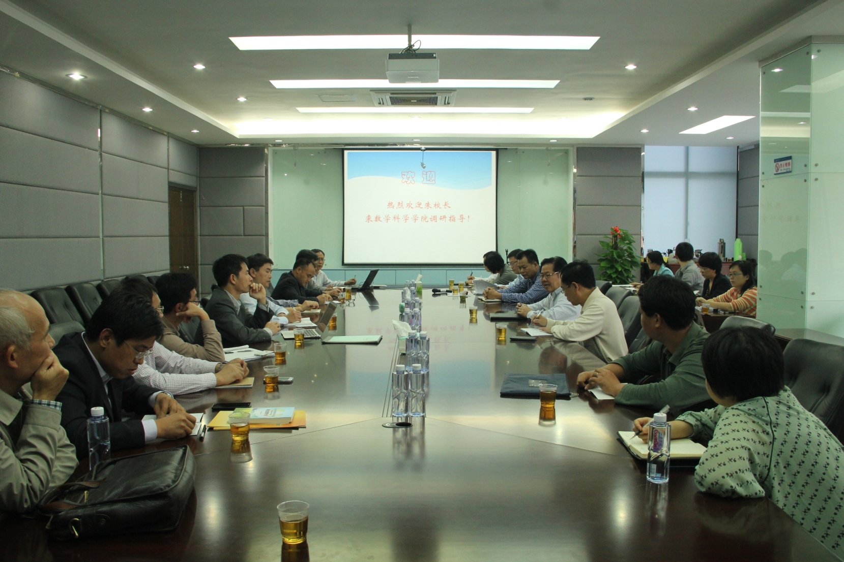林亚南院长以翔实的数据,从学院的基本情况、近几年数学学科前进的步伐、数学学科的内部分析及面临的机遇与挑战四个方面全面分析了学院的过去、现状和今后的工作重点与思路。林院长从1998年取得基础数学二级学科博士授予权开始,例数了学院抢抓机遇、不错失关键机会、实现学院事业快速发展的步伐。他从队伍情况、科研成果、国际化进程、二级学科建设目标和人才培养等五个方面对学院做了深入的内部剖析,从欧美等国家对数学重要性的认识和战略报告谈起,展望数学学科今后的发展机遇,通过对比分析,查找不足,提出对策,谋划发展。张明智书记、教授、许传炬副院长、邱春晖副院长等就学院文化营造、队伍建设、学术交流、学科建设和博士后政策等问题作了补充汇报。