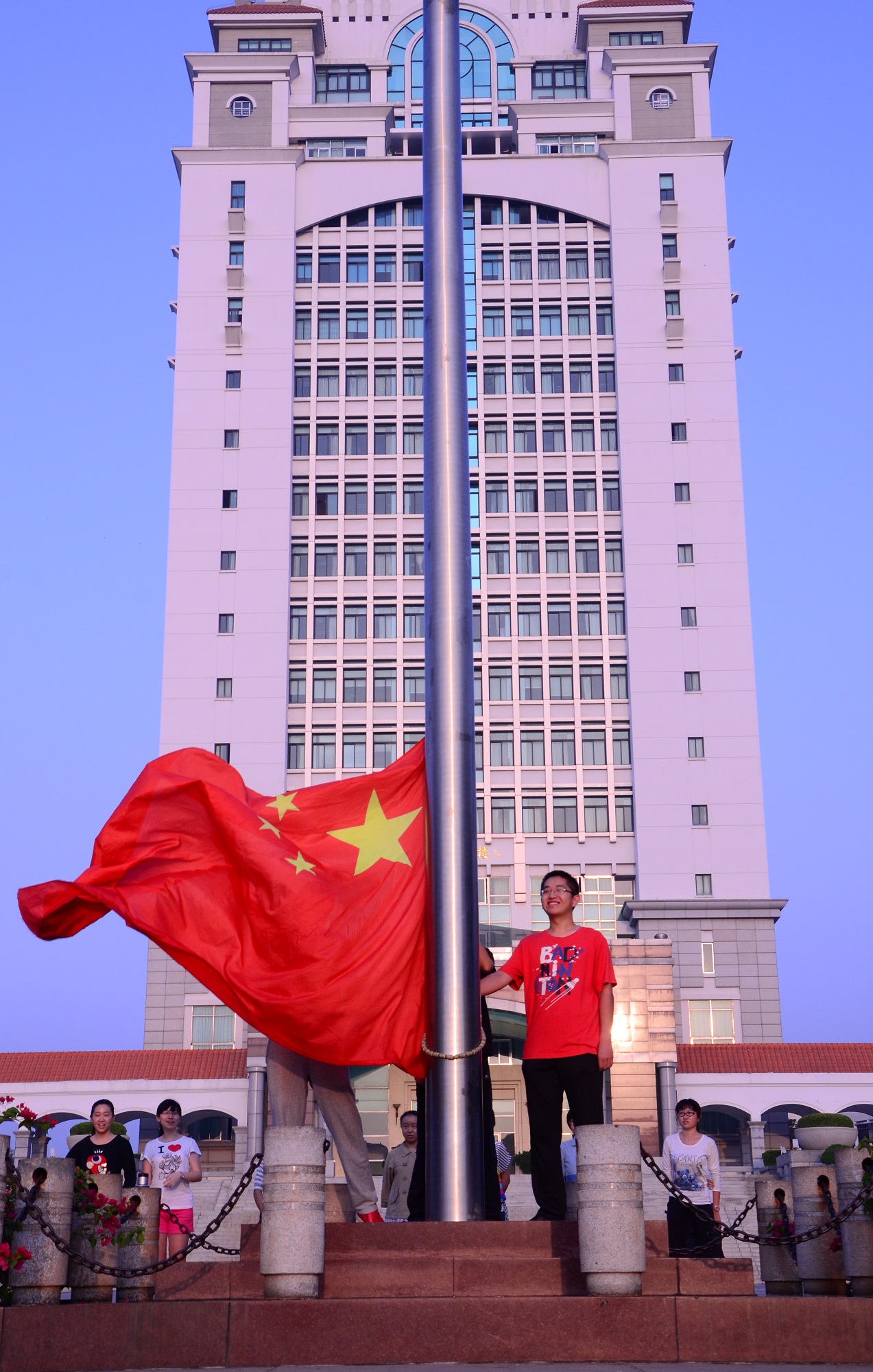 这是我们在大学第一次亲身参与升国旗,令我们深深地感受到升旗不仅仅是每周例行的任务,而是作为一名中国人神圣而光荣的使命与殊荣。