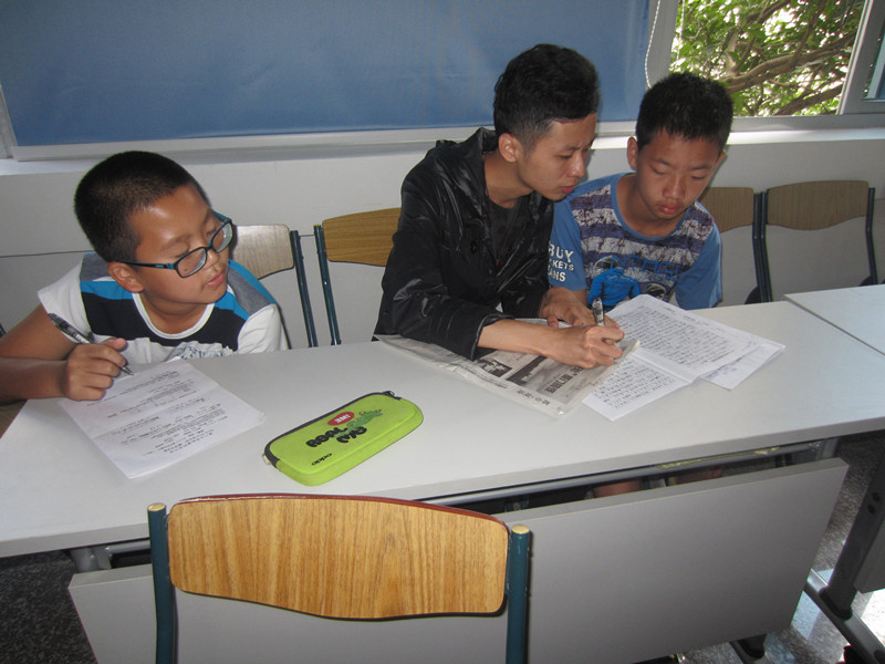 仪式结束后,9001cc金沙志愿者们与曾厝垵社区学生进行结对,并进行了第一次课业辅导。