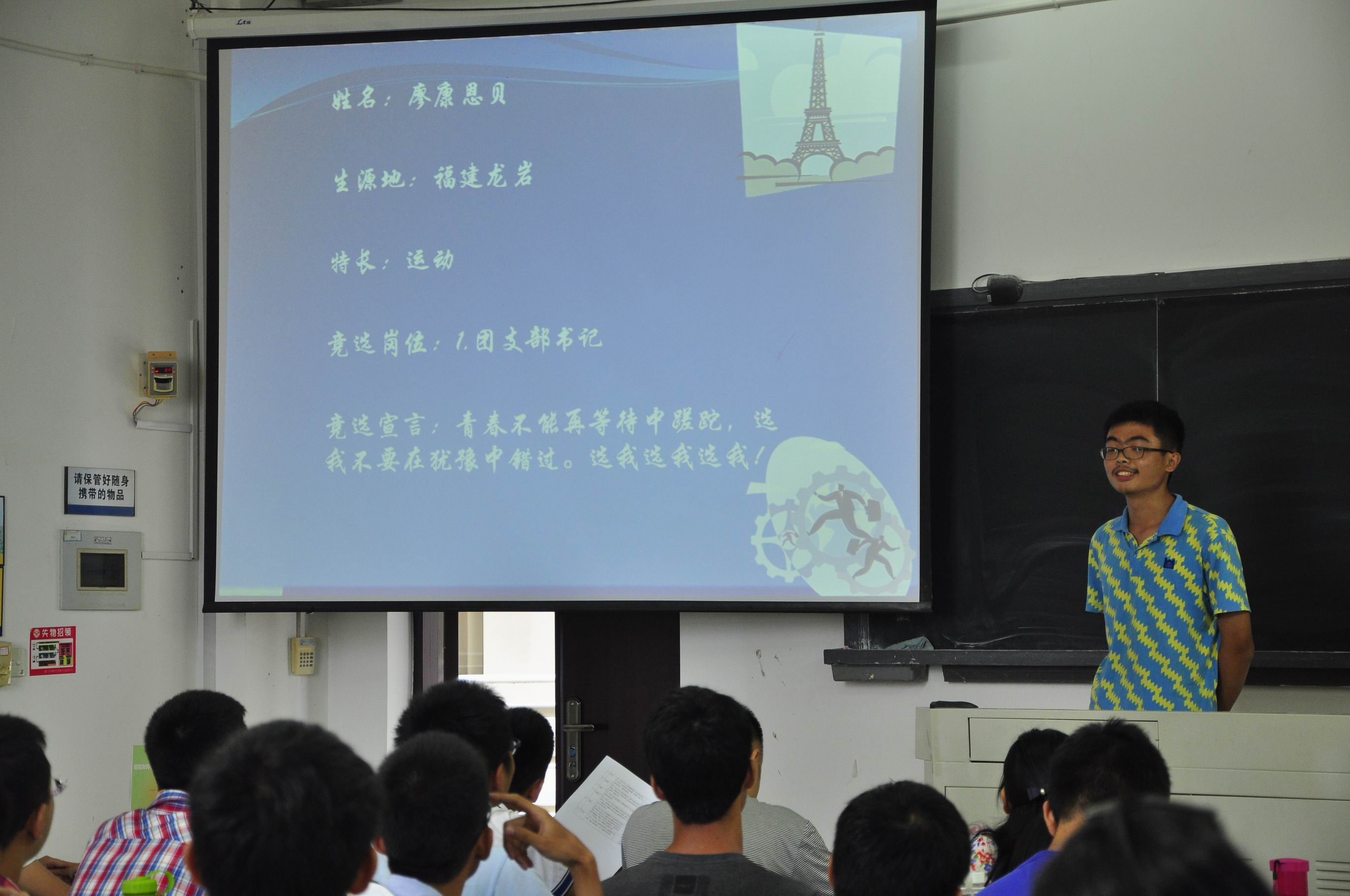 2014级本科生1、2班竞选会分别进行,1班由陈亚雯主持,2班由谭立芸主持。本次班委竞选共设班长、副班长、学习委员、生活委员、心理委员、体育委员、文娱委员,团支部书记、组宣委员9个职位。1班共有11位同学参加竞选,2班共有14名同学参加竞选。