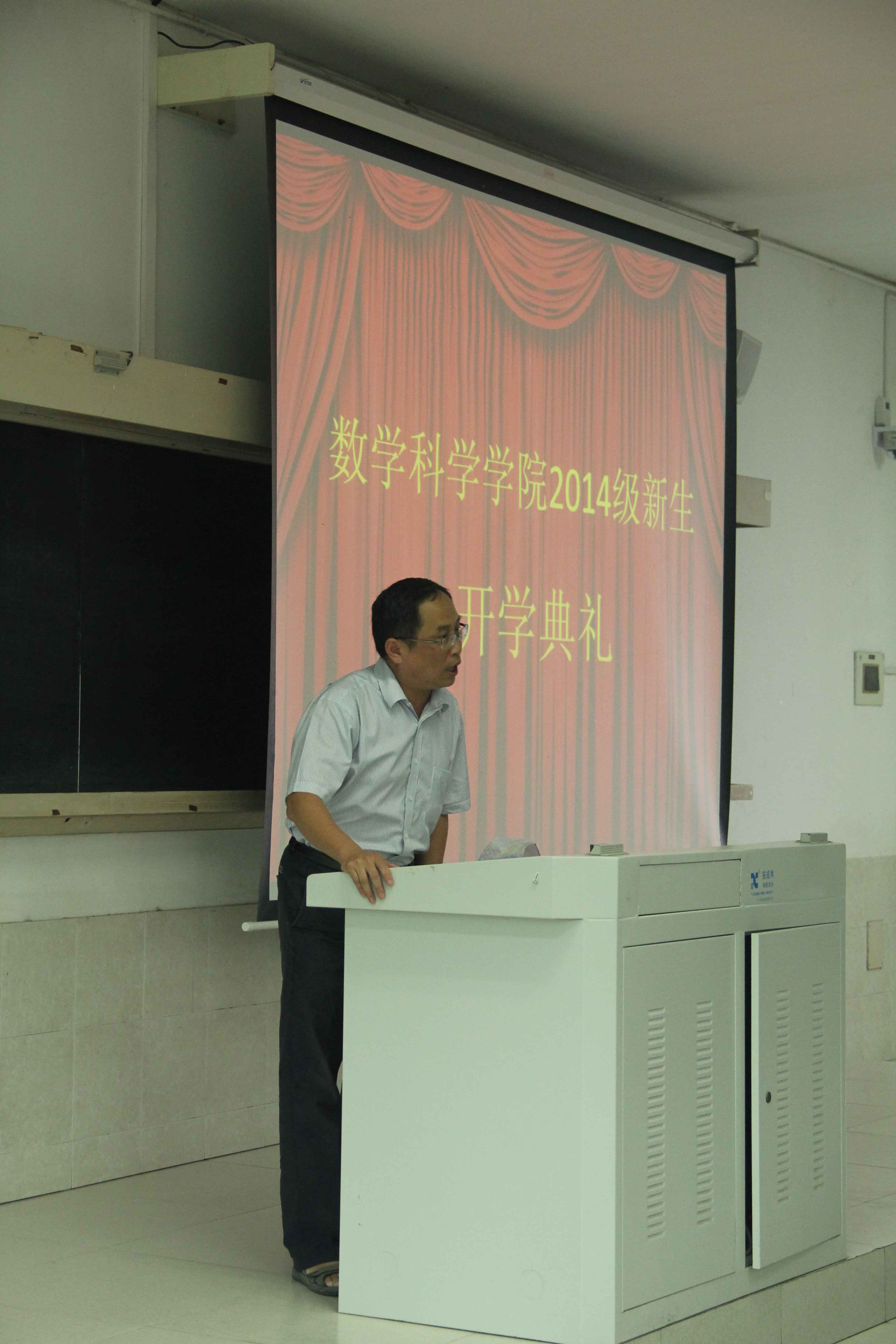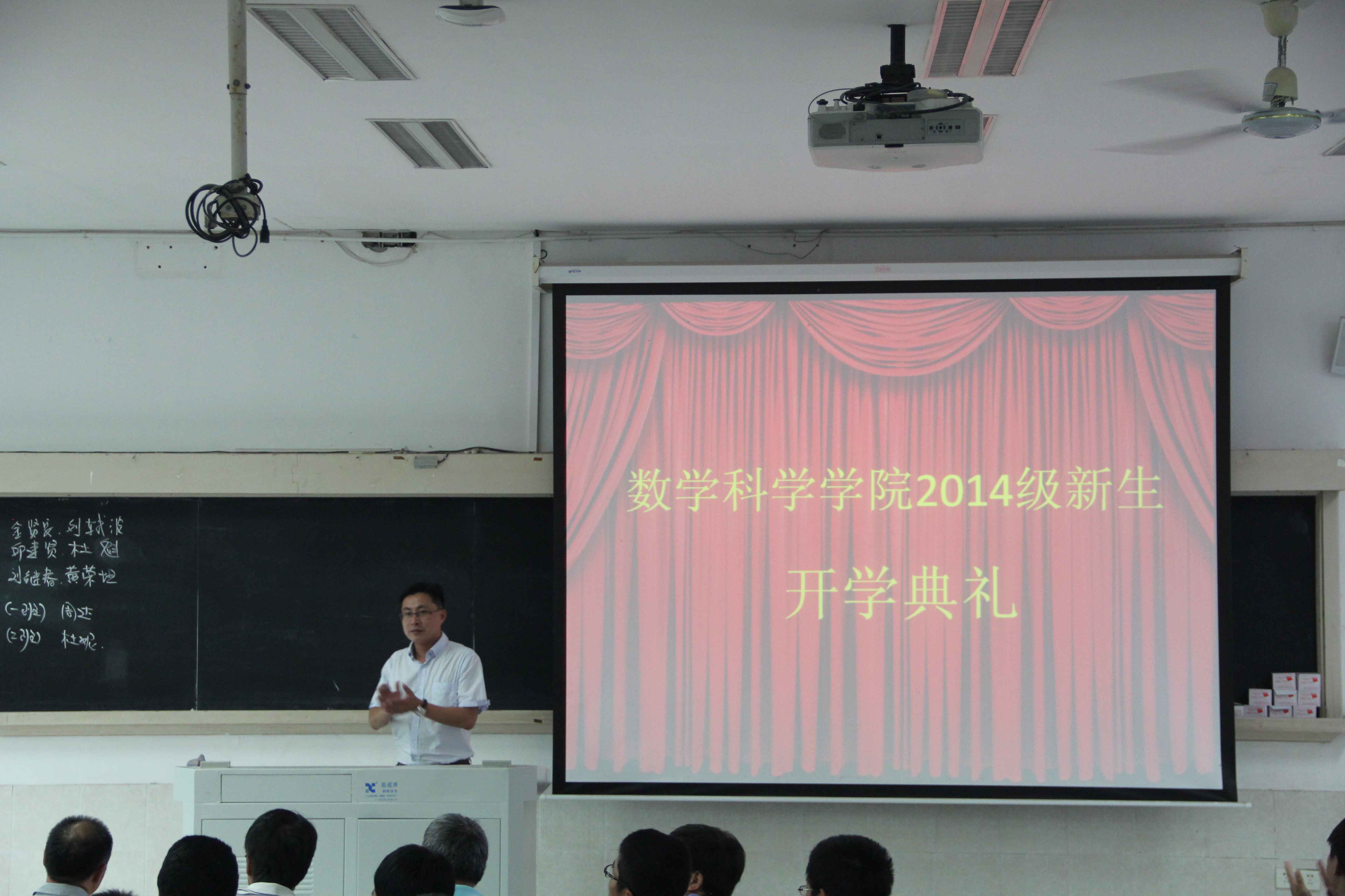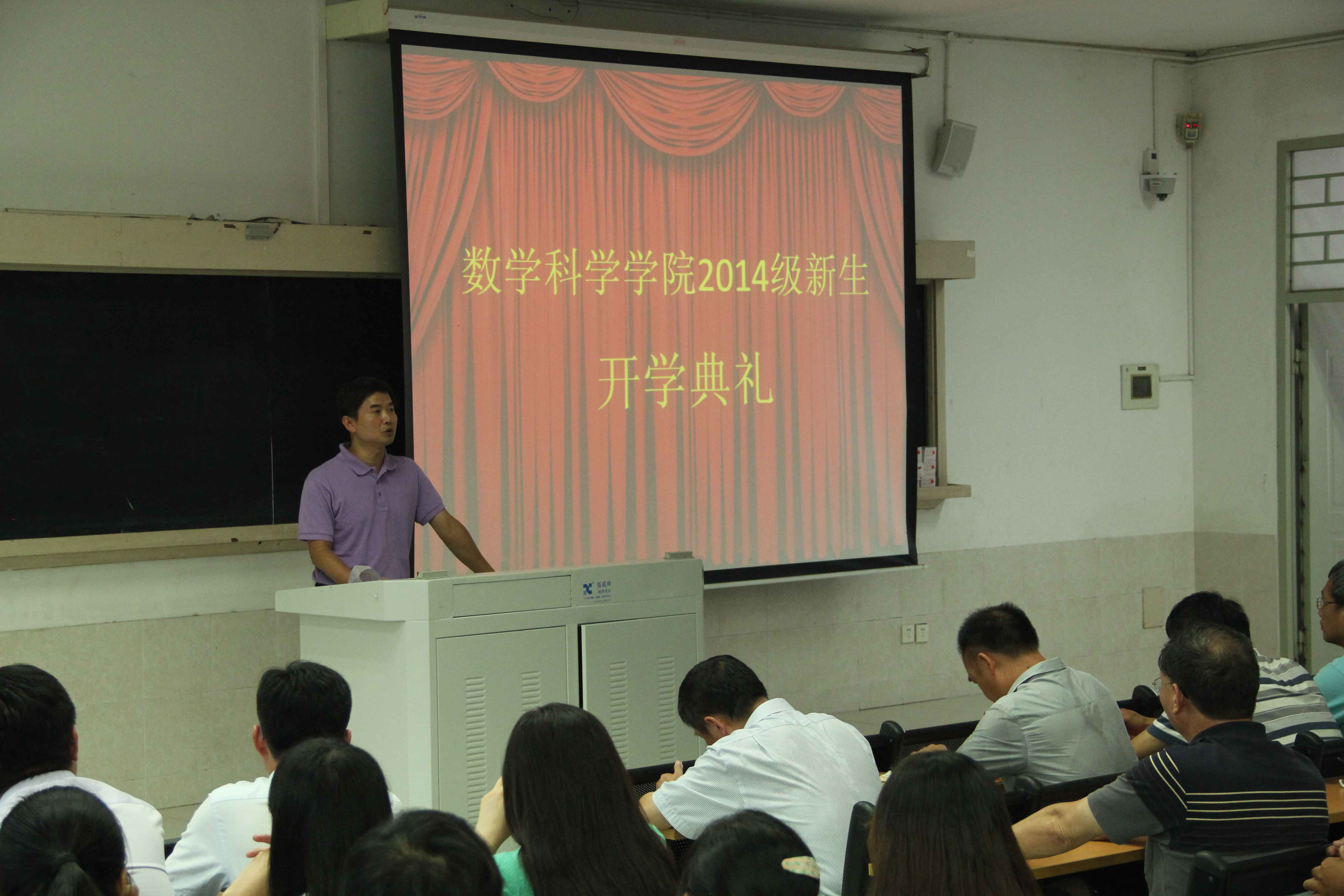 9月15日下午,9001cc金沙2014级新生开学典礼在公寓教学楼201隆重举行。院长林亚南,党委书记张明智,副院长邱春晖、许传炬、钱建国,党委副书记郑诚明、张剑文,系主任金贤安、邱建贤、刘继春、黄荣坦,2014级本科1班班主任周达、本科2班班主任杜妮,团委书记陈向柳,辅导员石义凯,兼职辅导员陈淑铌,全体2014级新生参加了典礼。典礼由张剑文主持。