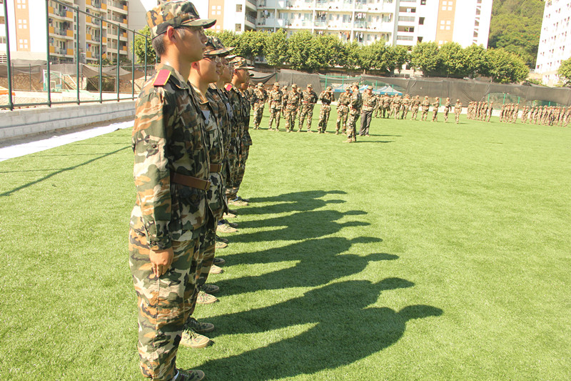 在部队教官的严格训练下,在短短的四天里,齐步走、正步走、齐步变正步、解散、集合及分列式等预定训练科目已初见成效。教官手把手教,学生认真的学,对每一个动作都仔细地研究。教官每天场上训练第一件事就是进行考勤,及时掌握同学们的军训动态,并将情况报告指导员。教官不仅带领学生进行军事训练,他们在平时还教育学生做人做事,培养学生良好的习惯和行为规范。训练中教官严格认真,表情严肃,而一旦中间休息时间,就与同学们打成一片,一起拉歌做游戏。