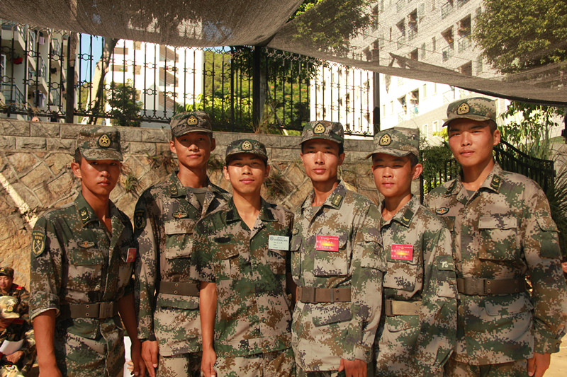 教导员郑诚明、指导员石义凯轮班到现场指导训练,他们与新生一样站在火热的太阳下,一样的穿着厚厚的军训服装,耐心的观察同学们的表情与异常,了解同学们军训情况,及时关心同学们。他们的关心与爱护为同学们带来了极大的鼓励,为军训增添了许多温馨的关怀。为给新生们留下军训珍贵的回忆,指导员石义凯还亲自扛起相机给同学们拍照留念,把同学们良好的军姿风采通过微博、微信进行展示。