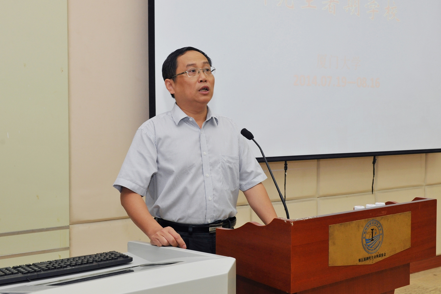 校长助理谭绍滨教授代表厦门大学致欢迎词,并向嘉宾和学员们介绍厦门大学和厦门大学数学学科。他说,厦门大学数学学科成立于1923年,是厦门大学最早成立的院系之一,90多年来培养了以柯召院士、陈景润院士和林群院士为代表的一大批数学家,厦门大学长期以来重视数学学科的发展,从人才引进、条件支撑等多方面给予支持。他指出,本次暑期学校在厦门大学举办,充分表明教育部和国家自然科学基金委对厦门大学数学学科的肯定和信任。谭绍滨教授强调,9001cc金沙要按照教育部和国家自然科学基金委员会的要求办好暑期学校,同时利用这个机会加强与国内兄弟院校在人才培养方面的合作与交流,提高厦门大学数学学科的影响力;各位学员要利用这个暑期学校的这个平台努力学习,为以后进一步的科学研究夯实基础。