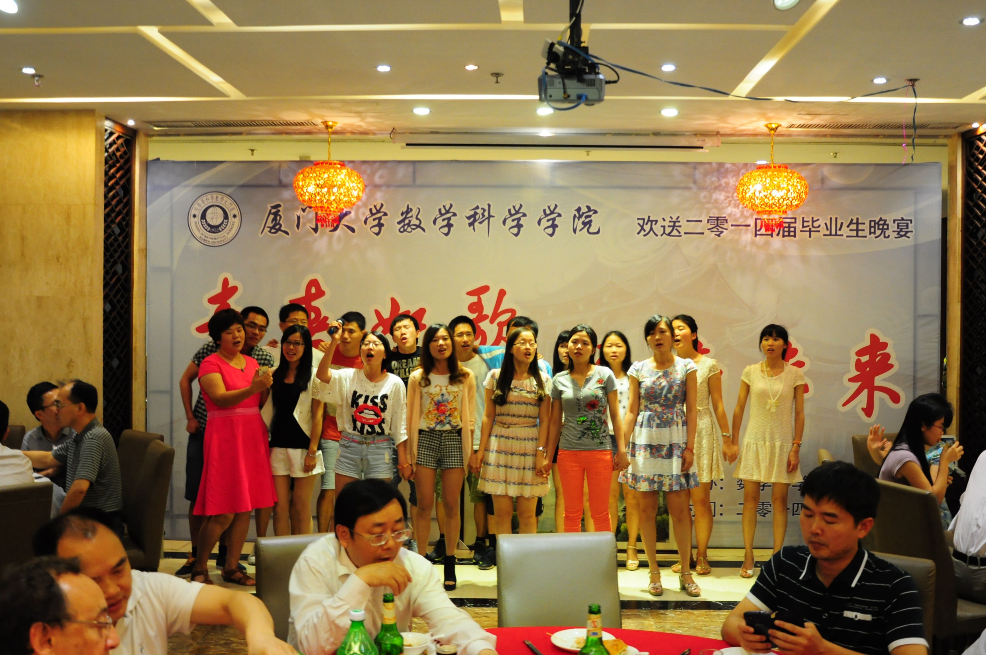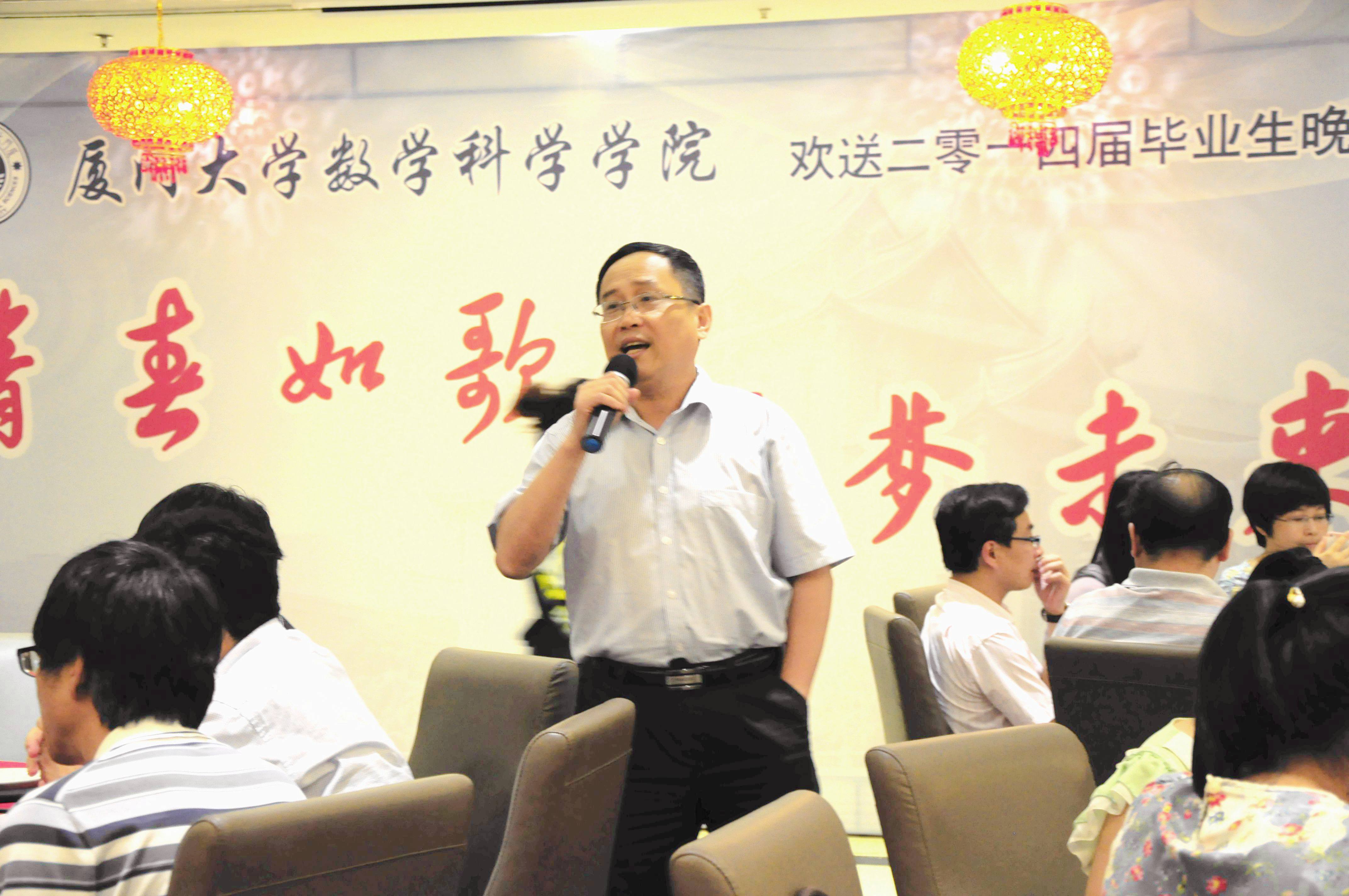 晚宴伊始,先由毕业后在交通银行厦门分行工作的王娟、在中科院信科所继续深造的周玉晶分别代表研究生、本科生发表毕业感言,她们代表全体毕业同学对老师们的辛勤栽培表达了感激之情,抒发了对厦门大学的热爱与不舍。