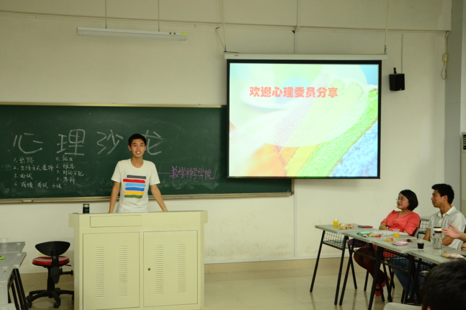 本次活动围绕数学专业学生有何压力,面对压力如何自我减压、如何保持健康阳光的心态为主题。心理咨询中心祝婧媛博士、辅导员石义凯、素拓部成员、各班心理委员、学生代表参加了本次活动。心理沙龙由骆依尧主持。