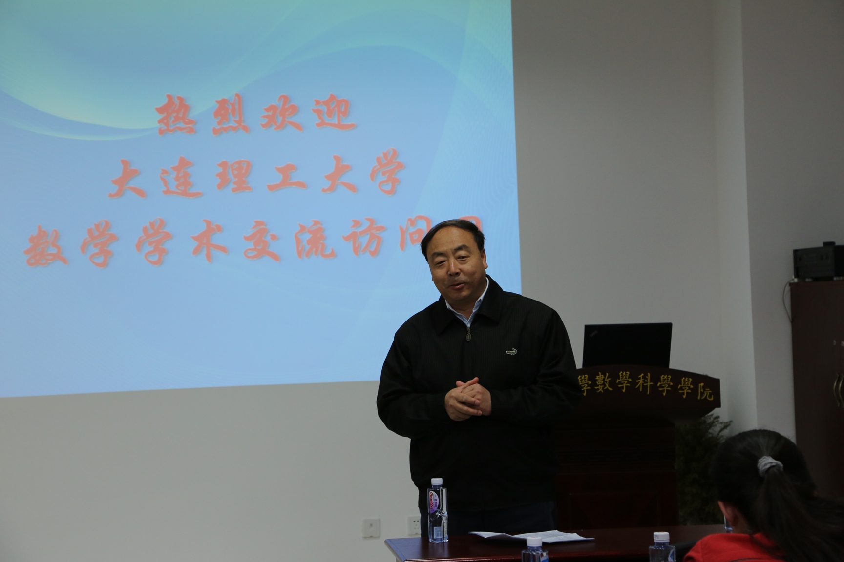 上午和下午的学术报告会由雷逢春副院长和许传炬副院长主持,双方代表奉献了10场精彩的学术报告。大连理工大学王毅教授、刘秀平教授、朱春钢教授、韩志清教授、丛洪兹博士和王晓光博士分别做了题为《Total positivity of Riordan-like arrays》、《基于低秩表示的某些数字几何问题处理》、《Toric曲面的几何性质》、《Existence of a ground state solution for a quasilinear Schrödinger equation》、《Long time stability of KAM tori for some Hamiltonian PDES》、《Robust estimation for survival partially linear single-index models》的学术报告,我院张莲珠教授、曹娟副教授、刘轼波教授、王海斌教授分别做了题为《Graphs with Pfaffian orientations》、《Approximation by Piecewise Polynomials on Voronoi Tessellation》、《Standing waves of nonlinear Schrodinger-Poisson system》、《Multivariate Partially Linear Single-Index Models: Bayesian Method》的学术报告。学术报告会取得圆满成功。