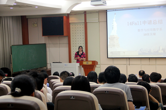 2010级已成功申请名校的优秀同学介绍了他们的心路历程与宝贵经验。申请到哥伦比亚大学数学专业的吴璇、伦敦帝国理工大学风险管理与金融工程专业的裴姗姗、华盛顿大学计算金融与风险管理专业的李玉博、新加坡南洋理工大学应用数学专业的俞童慧、伊利诺伊大学厄巴纳-香槟分校应用数学专业的徐熠捷分别分享了自己的经验,包括学校选择、自身定位、英语准备、个人简历撰写、出国留学GPA方面等。这其中充满着竞争和付出,但收到offer的那一刻让人既兴奋又感动。